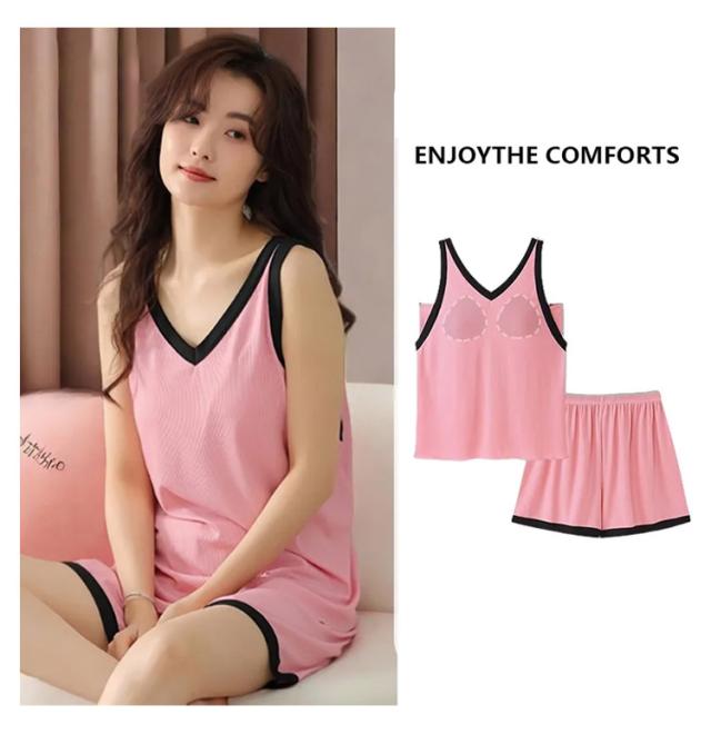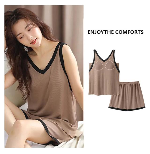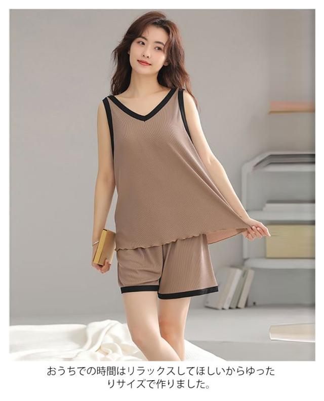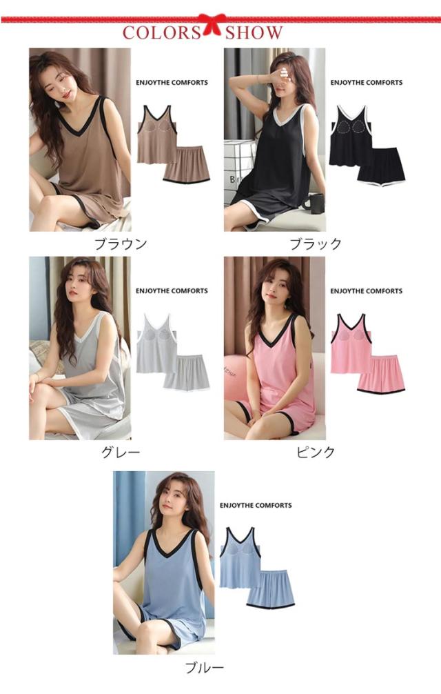 接触冷感 春夏秋 上下セット カップ付き ショートパンツ 涼しい 薄手 レディース ゆったり タンクトップ ルームウェア 女性 パッド付き 部屋着 ナイトウェア 寝巻き 大きいサイズ カップ付き ストレッチ 通気性 柔らか 快適
