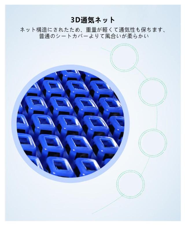 | 涼しいシートクッション。暑い夏でも快適なドライブ 優れた通気性:高品質のポリエステルを採用し、生地も3D構造によって設計されますので、通気性がUP 3D通気ネット:ネット構造にされたため、重量が軽くて通気性も保ちます、普通のシートカバーよりて風合いが柔らかい 冷感クッション・蒸れない:ひんやり接触冷感素材なので、夏場でも蒸れにくく快適な座り心地が得られます。表面は薄手で軽やかな生地を採用し、蒸し暑くなく、柔らかくて繊細で肌にべたつかないく、フォーシーズン快適に使えます。 水で洗える・色褪せない:新型材料を採用し、水や汗で濡れても色褪せません。清浄も水で洗うことができます | |