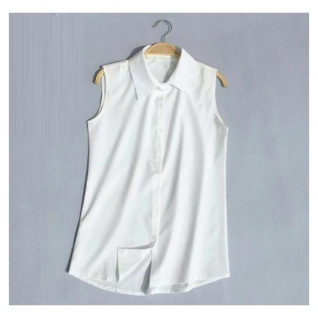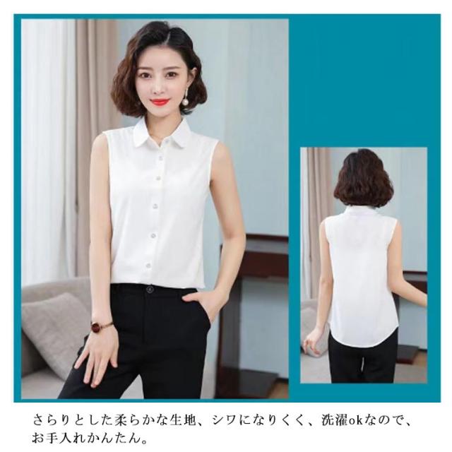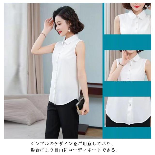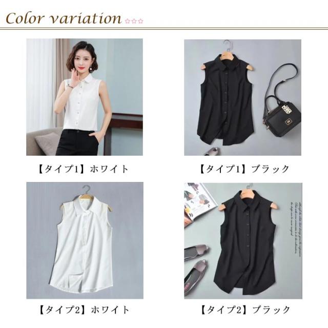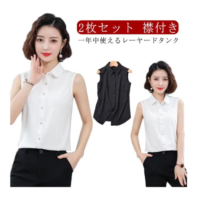 シャツ スリーブレス 白 2タイプ選べる シャツブラウス 2枚セット 袖なし ブラウス レディース シンプル レディース タンクトップ スリム ノースリーブ 重ね着 トップス 2枚セット レイヤード 襟付き 黒 白 黒 夏 薄手 スーツ インナー 春夏