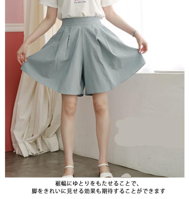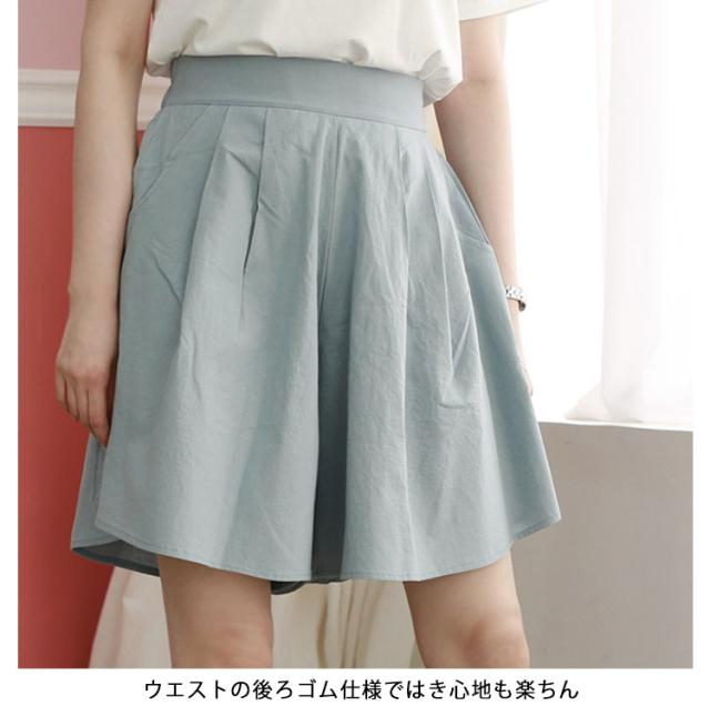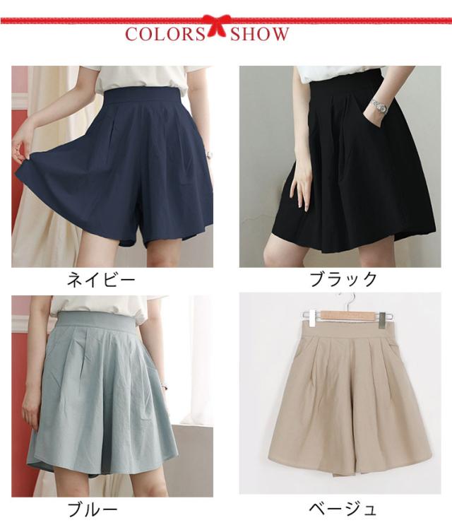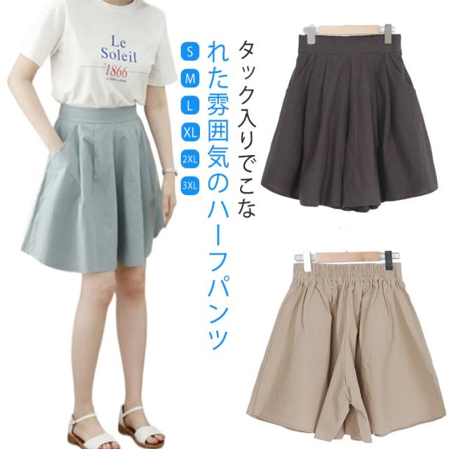 膝丈 ハーフパンツ レディース Aライン ショートパンツ 薄手 ガウチョパンツ 春夏 春 フレアパンツ キュロット ワイド 大きいサイズ ゆったり タックショートパンツ ウエストゴム ポケット付き カジュアル ショートパンツ 夏 春夏