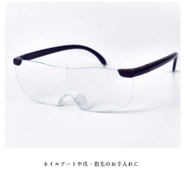 | 両手が自由に使えて便利なメガネ型ルーペです。【約5倍】 UVカット&ブルーライトカットレンズでスマホ操作にもおススメです。 耐久性が高いフレーム・テンプルは肌にやさしくフィットし、片手でサッとかけられます。 重さたったの38g、超軽量タイプ。 話題の「メガネ型拡大鏡」ハンズフリーで、あらゆるシーンで使えます。 《こんなときに活躍!》 ● 裁縫やプラモデル、時計の修理など細かい作業に ● ネイルアートや爪・指先のお手入れに ● 新聞・本など文字を読むときに ● スマホ・タブレットの操作に | |