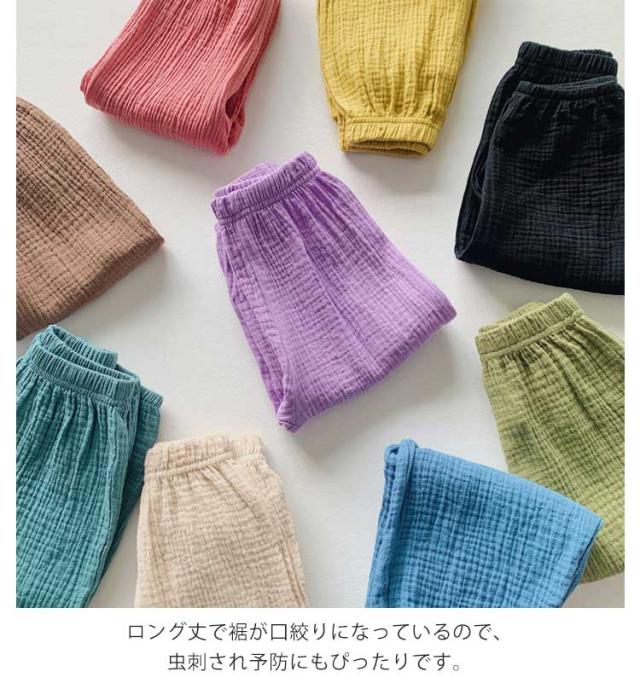| ・ふんわりやわらかダブルガーゼ生地のロングパンツ。 ・やわらかくて軽い2重ガーゼ素材で、通気性&吸水性に優れた快適な着心地。 ・ウエストは総ゴム仕様でらくちん ・ロング丈で裾が口絞りになっているので、虫刺され予防にもぴったりです。 | |