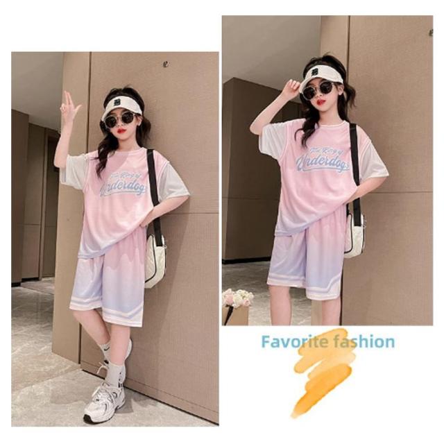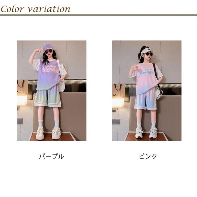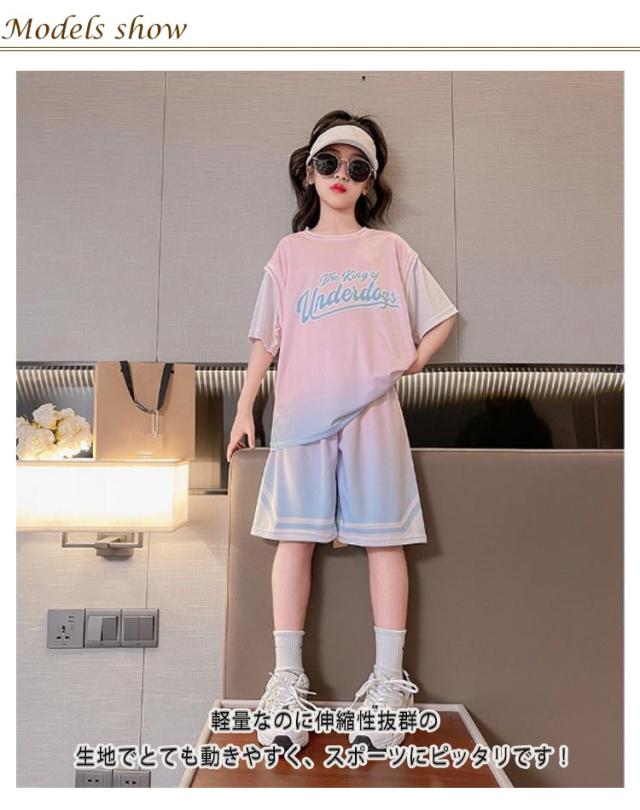 上下2点セット 子供服 女の子 バスケットボールウエア Tシャツ 半袖 ジュニア セットアップ ハーフパンツ 速乾 吸汗 団体服 演出服 練習着 トレーニングウエア スポーツウエア 通学