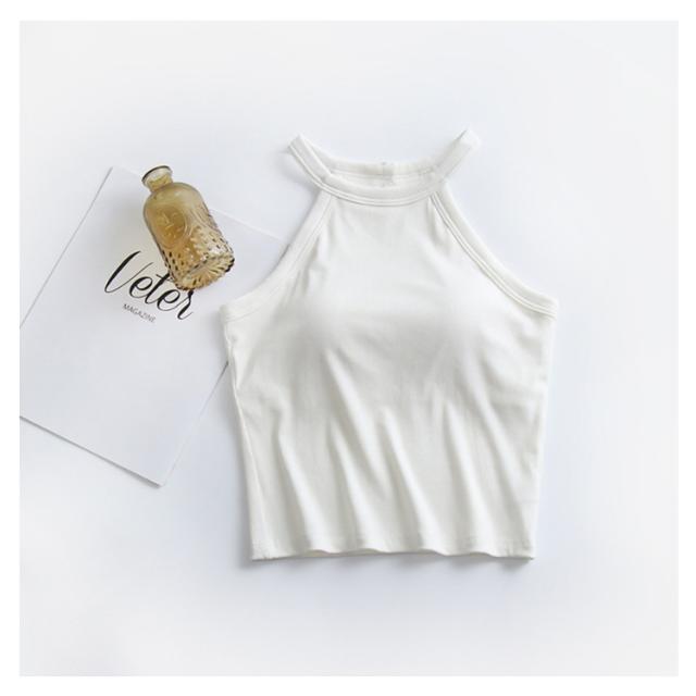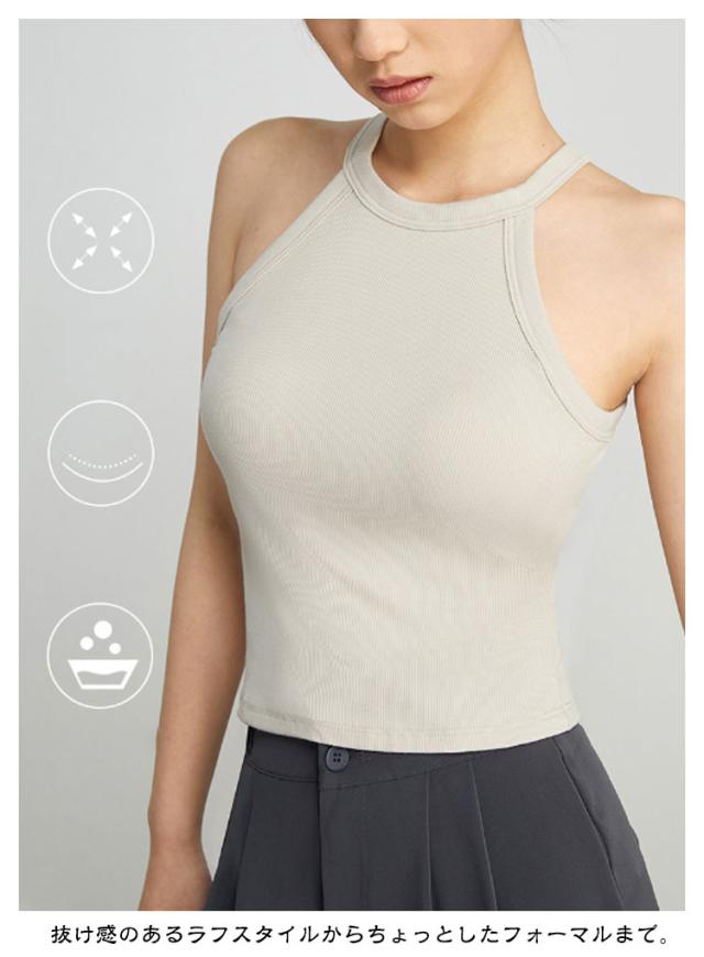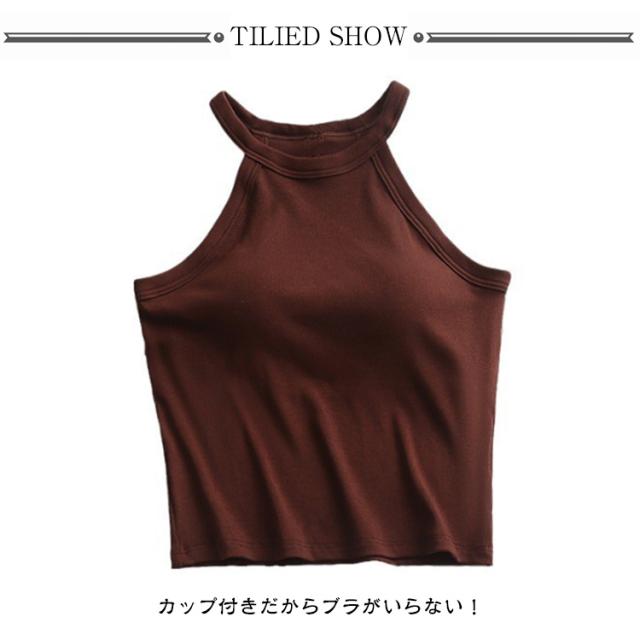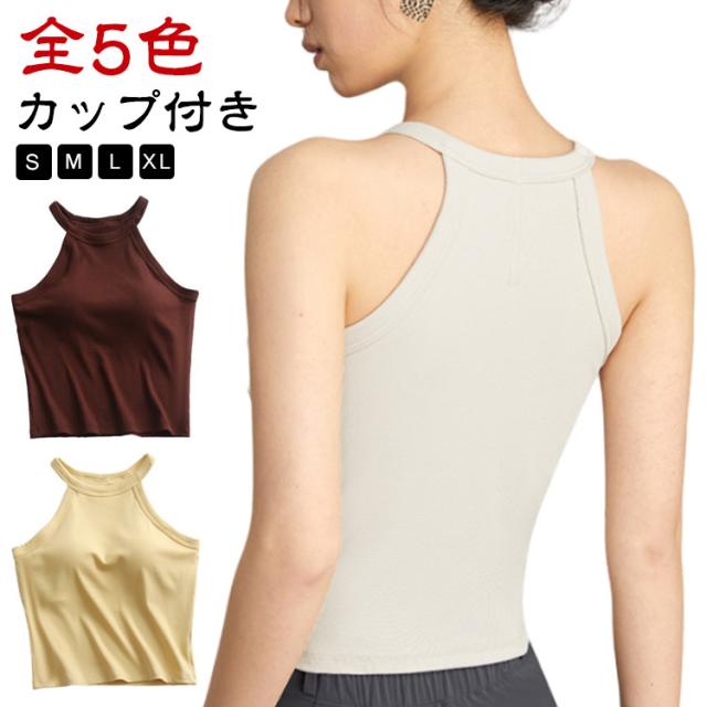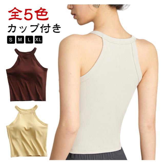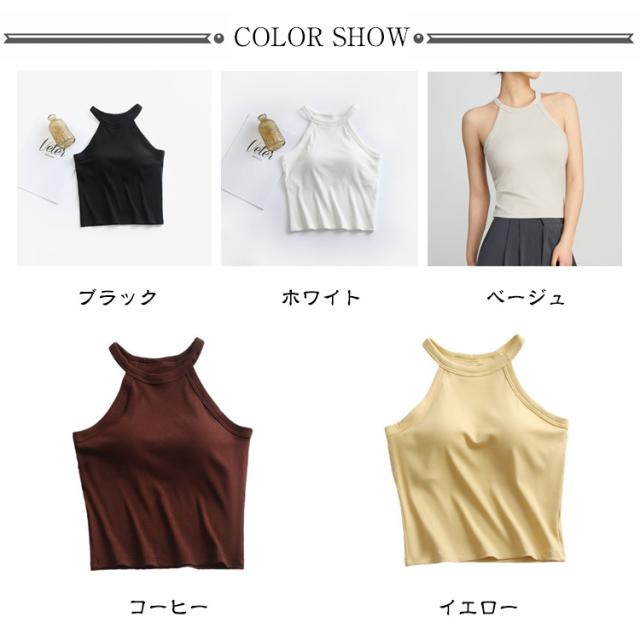 キャミソール タンクトップ ホルターネック カップ付き リブ ノースリーブ ブラトップ ブラキャミ トップス 全5色 締め付けない カップ付きインナー パッド 大きいサイズ ノンワイヤー レディース 重ね着 おしゃれ 白 黒