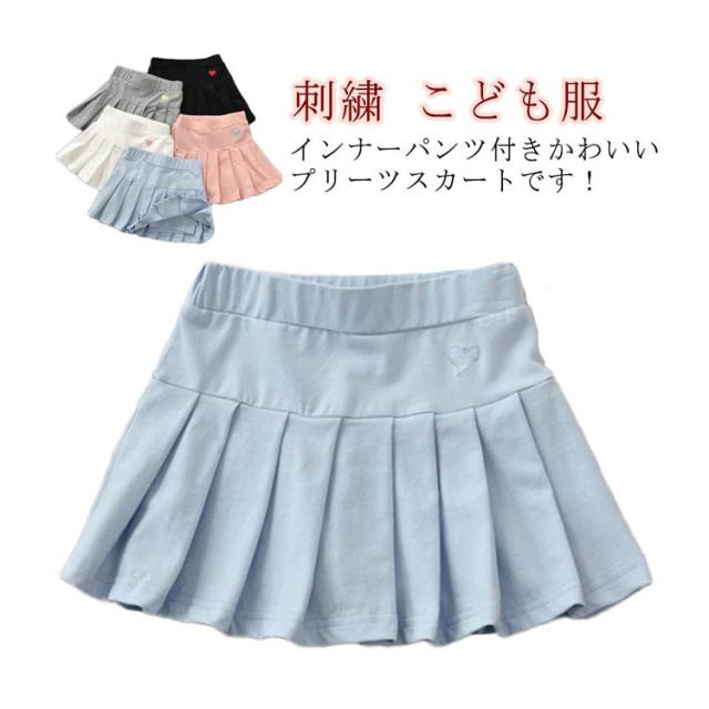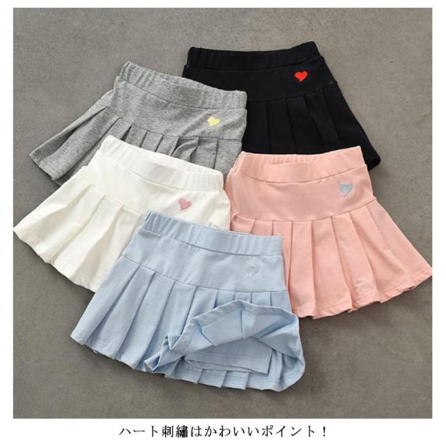 ミニスカート ミニスカート ゴルフウェア プリーツスカート ミニ丈 キッズ 110cm ハート刺繍 スカート こども服 スポーツウェア インナーパンツ付き テニスウェア ワンポイント 女の子 100cm プリーツスカート 120cm 130cm 140cm 150cm 160cm