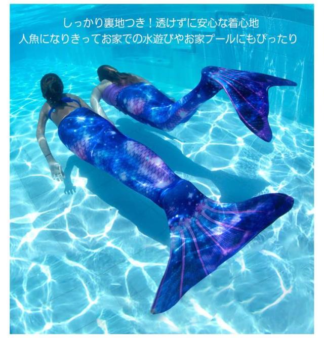 | いつも可愛い姿でいてほしい!なりきり人魚姫マーメイド水着。 一枚の大きな足ヒレに両足を入れて泳ぐため、イルカや人魚のような泳ぎをすることができるんです。 しっかり裏地つき!透けずに安心な着心地◎ 人魚になりきってお家での水遊びやお家プールにもぴったり♪ 海水浴やプールで大活躍します!水泳トレーニング、夏のサーフィン、ビーチの休暇にも! | |