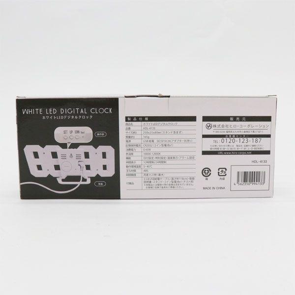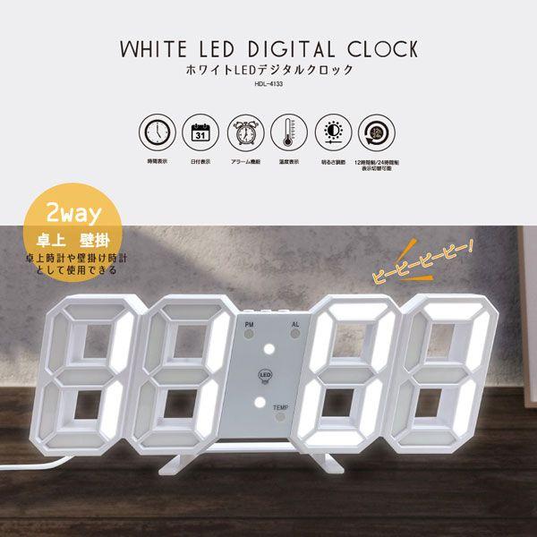 HIRO LEDデジタルクロック ホワイト 日付・時間・温度表示 卓上・壁掛けどちらでも使える HDL-4133 ヒロコーポレーション HIRO CORPORATION ヒロ・コーポレーション デジタルクロック デジタル時計 置き掛け兼用時計 デジタル デジタル表示 LED 点灯 光 ライト ランプ 時計 クロック 卓上 置時計 置き時計 掛時計 掛け時計 壁掛け 兼用 両用 数字 日付 時間 温度 アラーム 12時間 24時間 表示 シンプル 白 WHITE HDL4133 HDL 4133