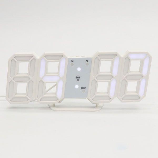 HIRO LEDデジタルクロック ホワイト 日付・時間・温度表示 卓上・壁掛けどちらでも使える HDL-4133