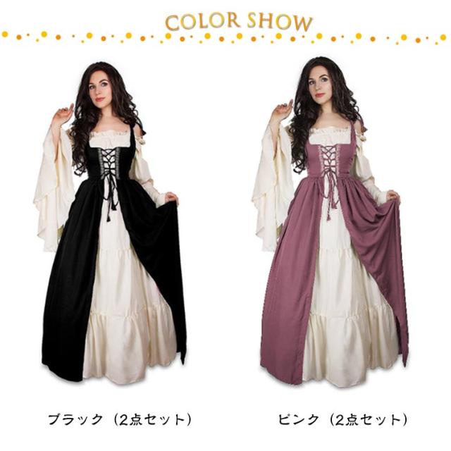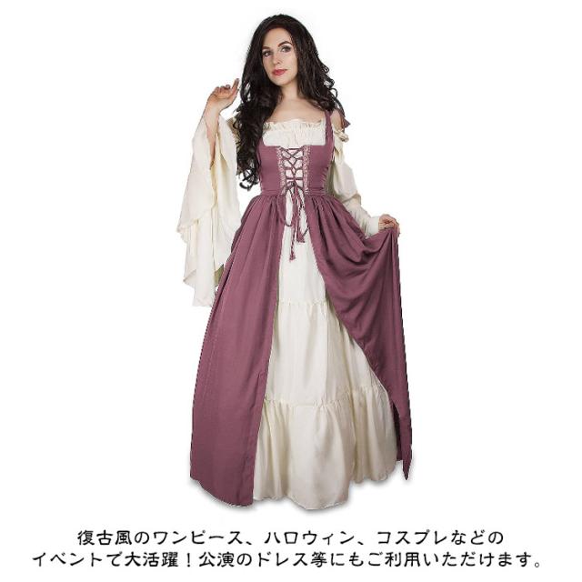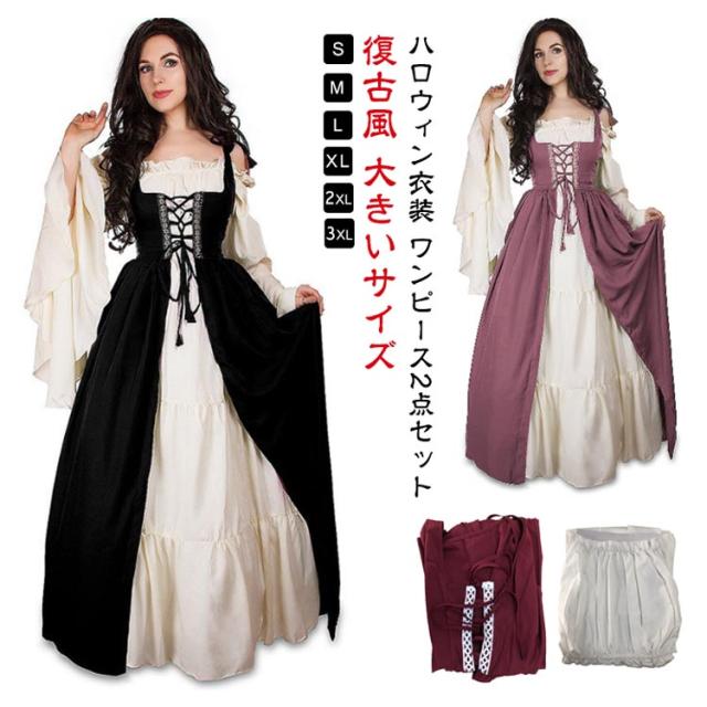 ハロウィン コスプレ ワンピース レディース 2点セット 中世ヨーロッパ 復古風 ドレス 公演服 中世 西洋 ヨーロッパ風 ハロウィン衣装 コスチューム コスプレ衣装 ハロウィン用品 大きいサイズ ワンピース 文化祭 宮廷装 忘年会