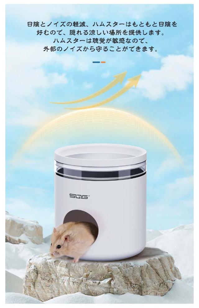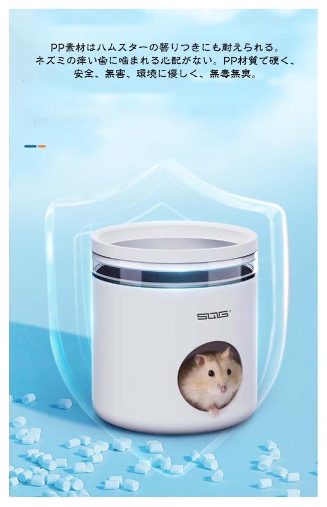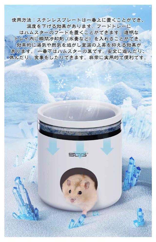 | ハムスターハウス。涼しい爽やか快適に夏を過ごす。多目的バケツ! 中空デザインで、夏は涼しく快適、休息と避難所の場所、お手入れ簡単、多種のネズミ類に適しています。 【立派な構造】穀倉とハウスにはステンレス製の冷却パネルがあり、冷却効果が抜群。穀倉:ハムスターの餌を入れることができます。エアコンエリア:アイスパックを置くことで冷房効果があります。ハウス:休憩用 【選りすぐる材質】PP素材はハムスターの齧りつきにも耐えられる。ネズミの痒い歯に噛まれる心配がない。PP材質で硬く、安全、無害、環境に優しく、無毒無臭。取り外し可能なクーリングハウスは、滑らかで掃除がしやすい! 【ハムスターの天性を尊重】日陰とノイズの軽減、ハムスターはもともと日陰を好むので、隠れる涼しい場所を提供します。ハムスターは聴覚が敏感なので、外部のノイズから守ることができます。 【選択が色々】適応対象:ハムスター、チンチラ、ピグミーマウス、シマリス、ハリネズミなどの小動物。 使用方法:ステンレスプレートは一番上に置くことができ、温度を下げる効果があります。フードトレーにはハムスターのフードを置くことができます。透明なトレイ内に瞬間冷却剤(氷嚢など)を入れることができ、効率的に湯気や熱気を逃がし室温の上昇を抑える効果があります。 一番下はハムスターの巣です。安全に遊んだり、休んだり、食事をしたりできます。非常に実用的で便利です。 | |
