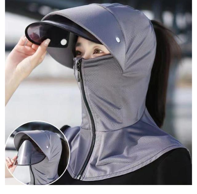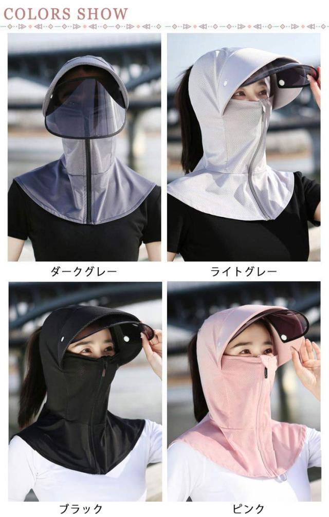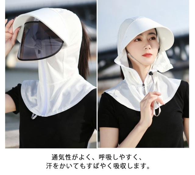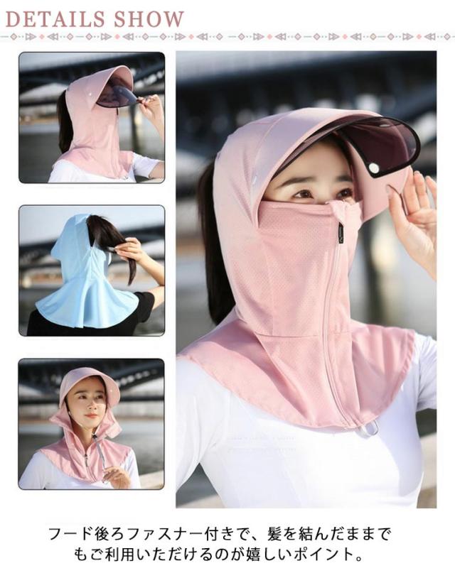 バラクラバ 紫外線対策 レディース UVカット ネックガード フード キャップ UVカット 髪を結んだまま 頭巾 パーカー つば広 サンバイザー 帽子 夏 日よけ 大きいサイズ 日よけ帽子 冷感 日よけ 軽量 飛ばない 日焼け止め 自転車 サイクリング