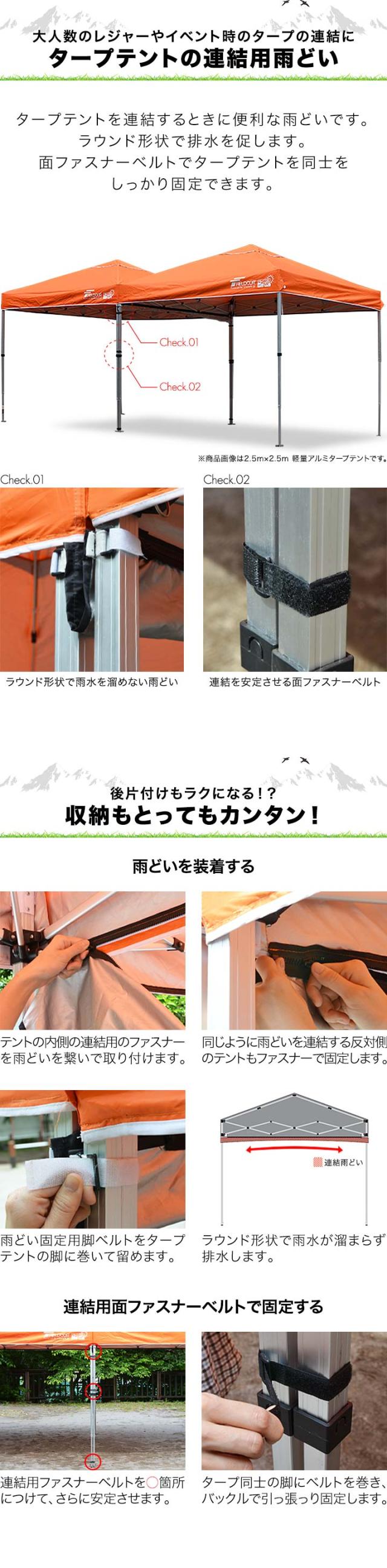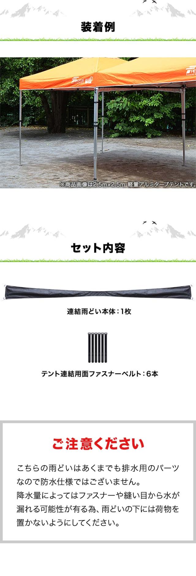 タープテント専用 連結雨どい テント連結面ファスナーベルト6本付き[G3] 1年保証 送料無料