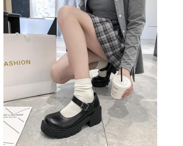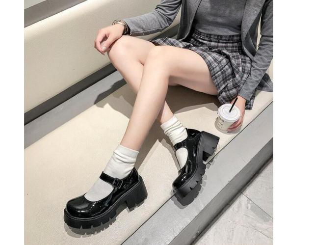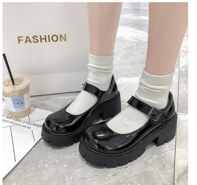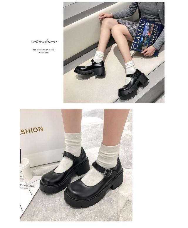 JK ロリータ 厚底 革靴 レディース 厚底 ヒール メリージェーン 靴 制服 女子高生