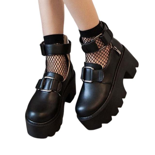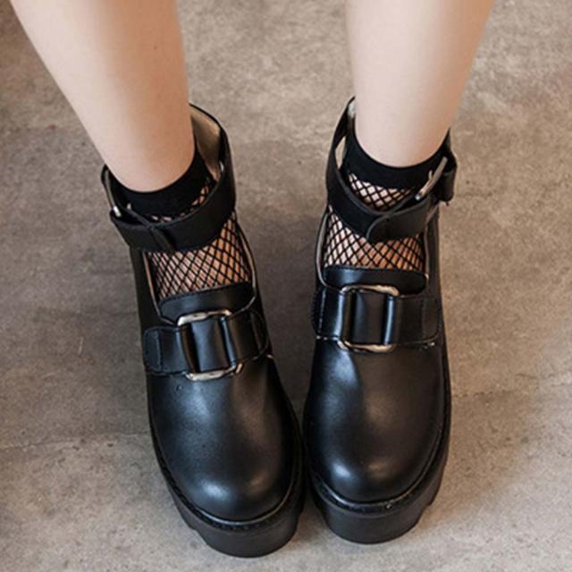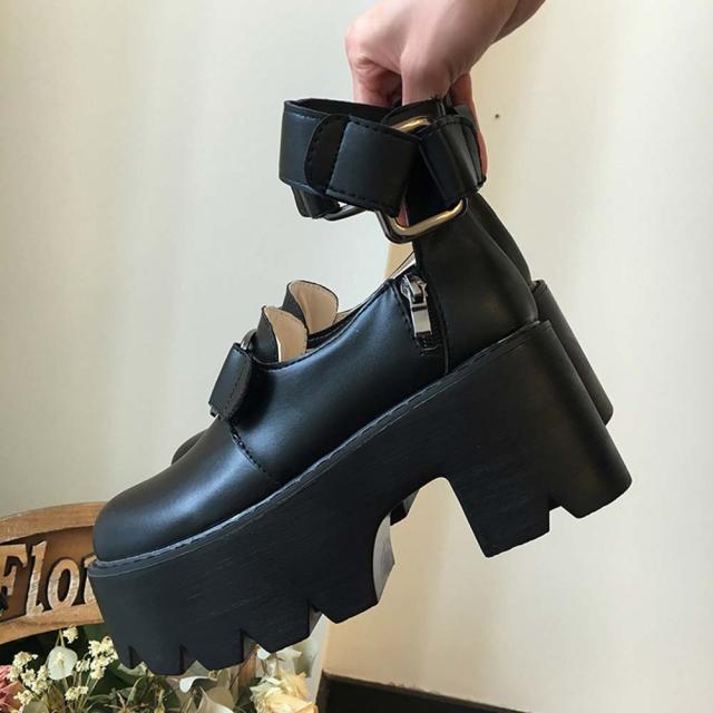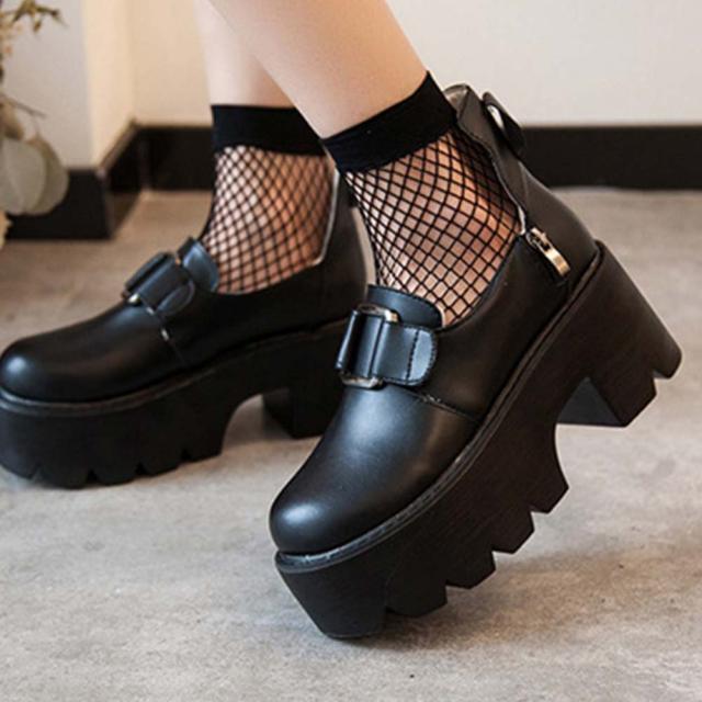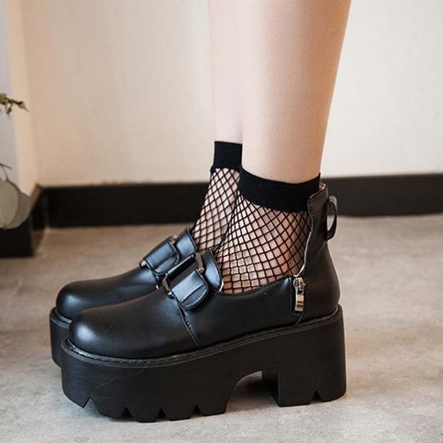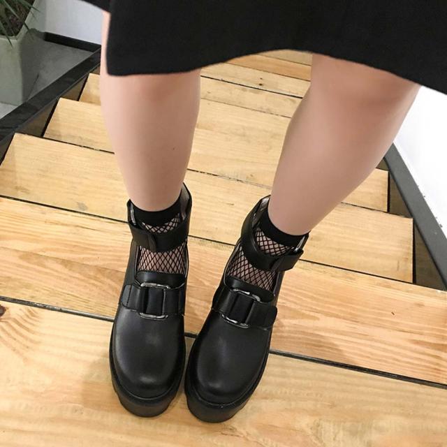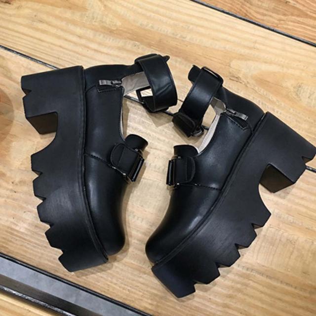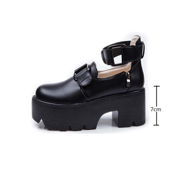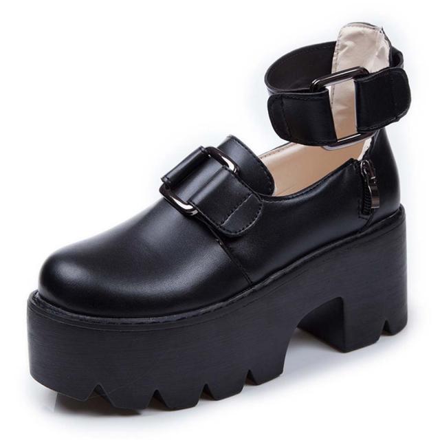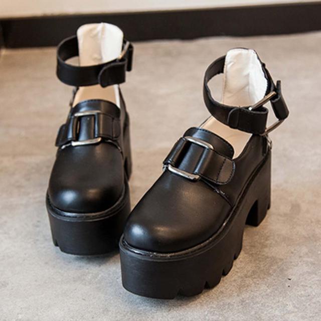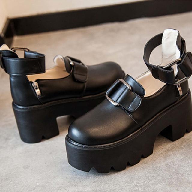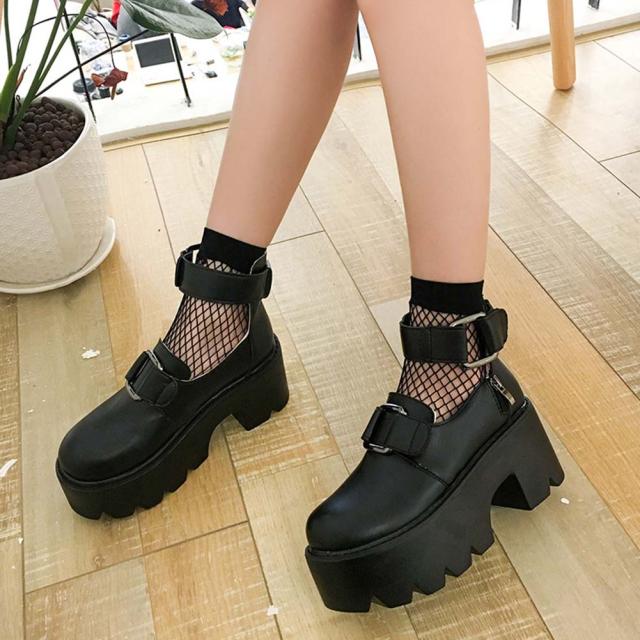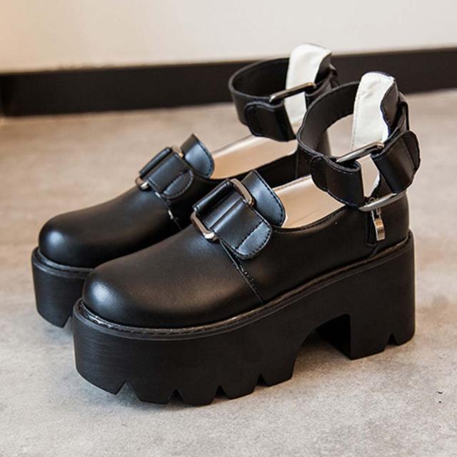 レディース ベルクロ ストラップ 厚底 シューズ リングバックル ゴスロリ