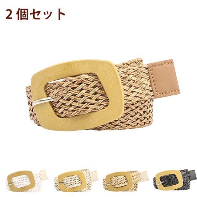 【2本セット】ベルト レディース 太 おしゃれ メッシュ オシャレ ウッドバックル 春 夏 フリーサイズ 太ベルト レディース おしゃれ メッシュ 太い メッシュベルト 木製バックル 編み込みベルト ウエストマーク ウエストベルト ナチュラル 母の日 春 夏