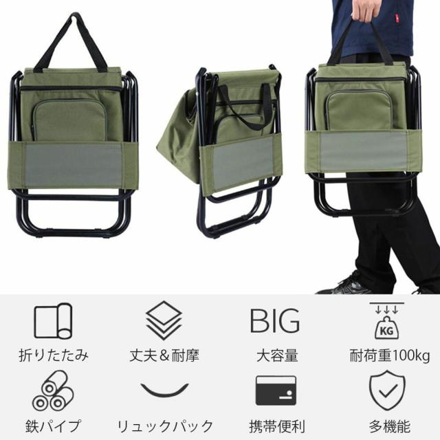 アウトドア 折りたたみチェア バックパックチェア 椅子付リュック 防水保温保冷パック ハンドバッグ超軽量 耐荷重100kg 持ち運びやすい 収納簡単 多機能 大容量 登山 釣り キャンプ 屋外 旅行用 アウトドアチェア 旅行用 運動会 釣りスツール