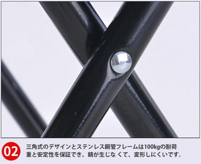 三角式のデザインとステンレス鋼管フレームは100kgの耐荷重と安定性を保証でき、錆が生じな くて、変形しにくいです。