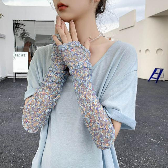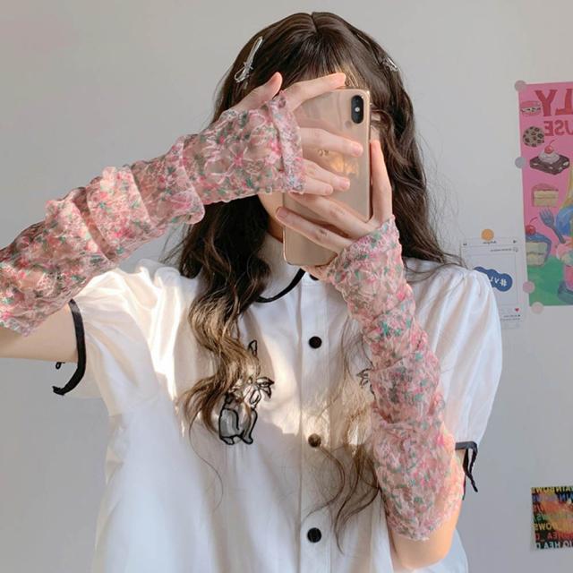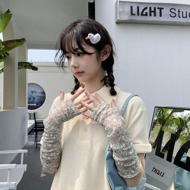 透け感のある涼しいレース素材で、伸縮性があります。いつものアームカバーと違って、ゆったりにデザインして、余裕あるので着脱しやすい動きやすいです。
