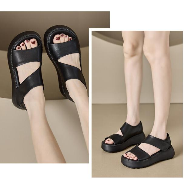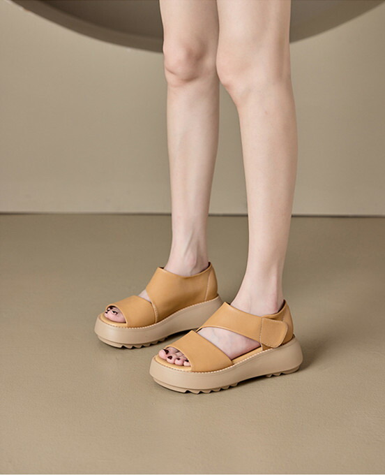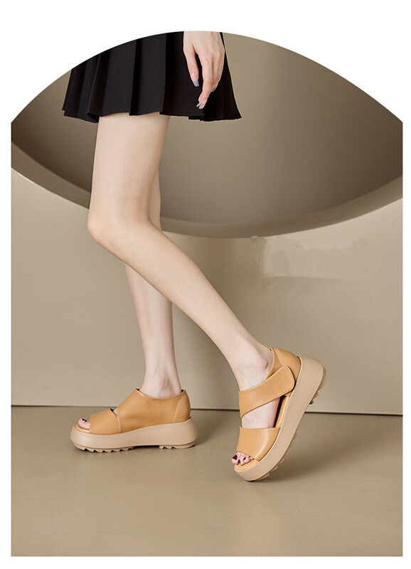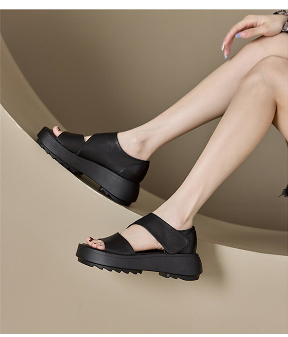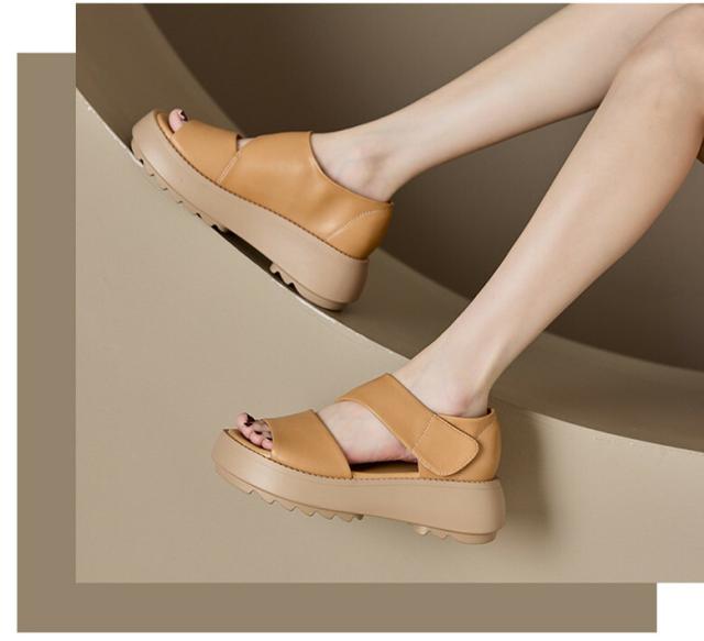 レディースサンダル 厚底スニーカー レディース マジックテープ レディースシューズ 牛革 5.5cm