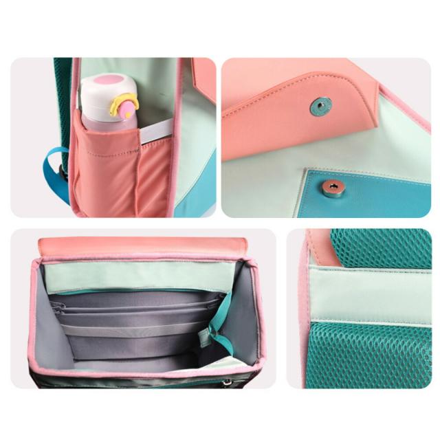 【出し入れしやすい】大きく開いて出し入れしやすい、フロントベルトが子どもでも留めやすいです。丁寧な縫製、底生地が合皮で汚れにくいです、厚地の生地で長く使えます。軽いなので、子供が背負っても負担がありません。