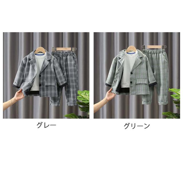 【完璧なスーツセット】スーツを着慣れていない小さな男の子も無理なく フォーマルな装いが決まる、ソフトタイプのおしゃれなスーツセットです。