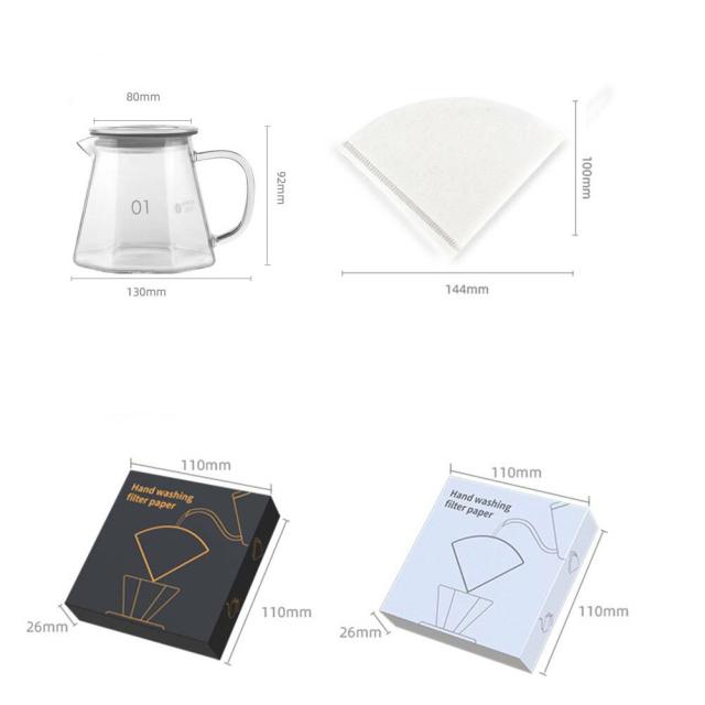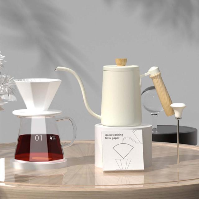 5点セット:八角フィルターカップ*1個、濾紙、コーヒーポット*1個、温度針*1個、コーヒードリップポット*1個