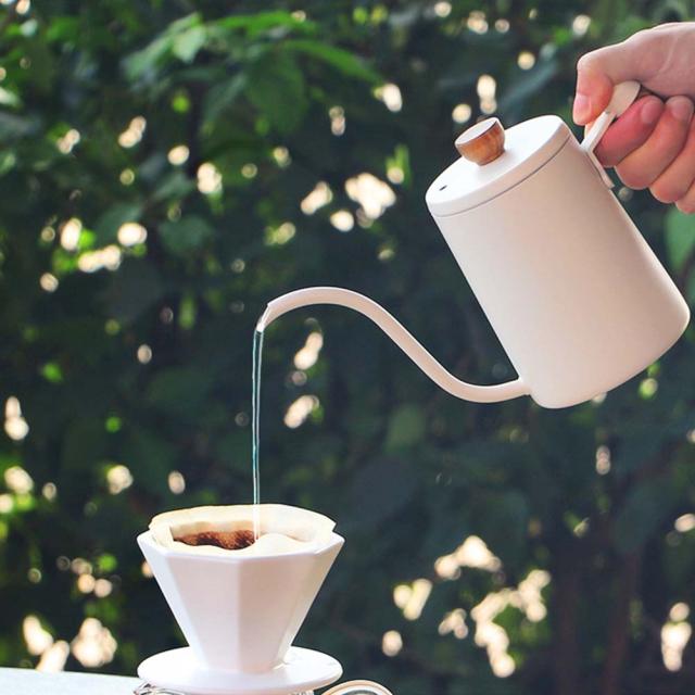 【超極細の注ぎ口】注ぎ口は細いのでお湯の速度が安定です。90度になった穏やか水流ができます。注ぎ口は注ぎやすく、液垂れしにくい理想的な形状です。