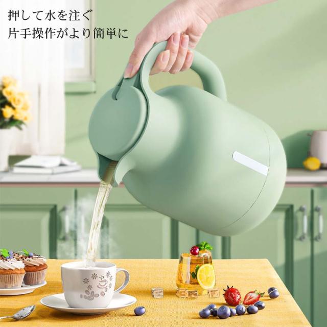 【ワンボタンで水を注ぐ】押して出水式の設計で、密封漏れ防止のと同時にポットの保温時間がもっと長く。また、フタが洗えるので、清潔に使用できます。