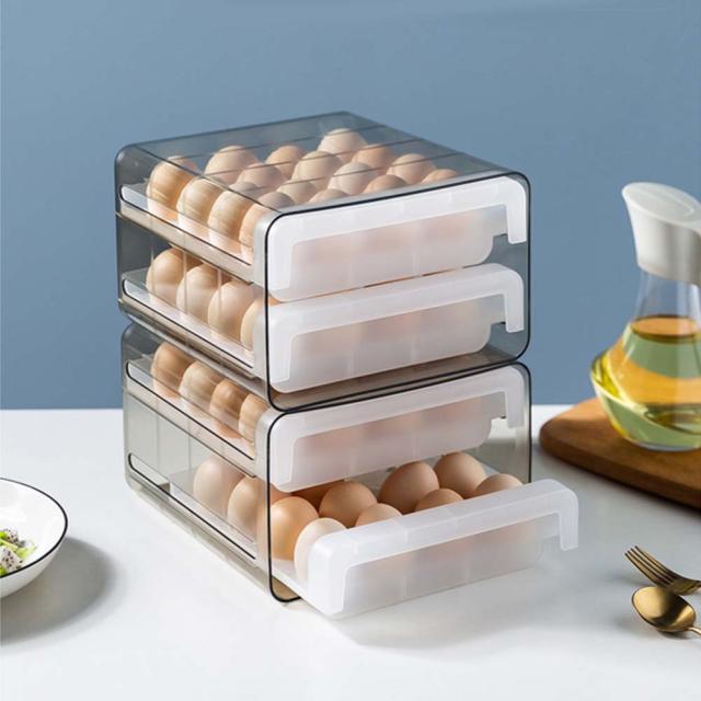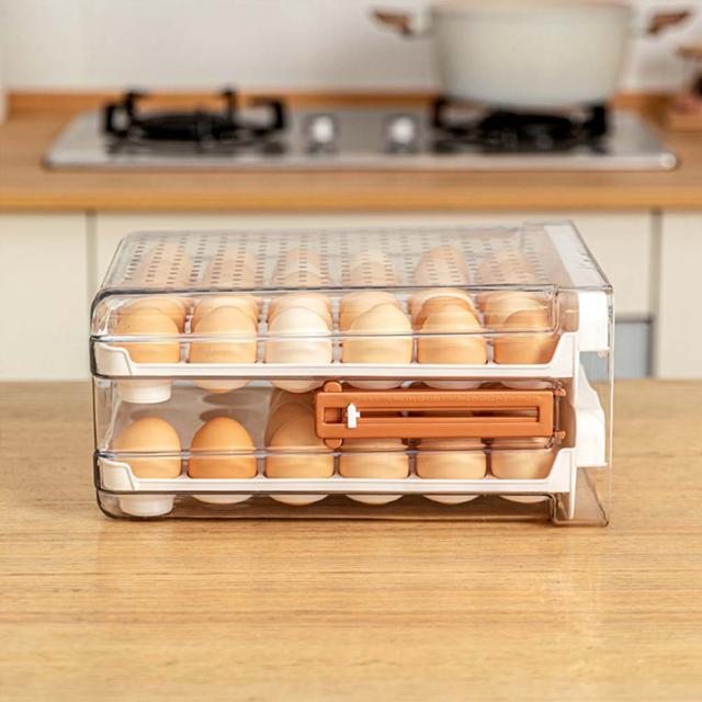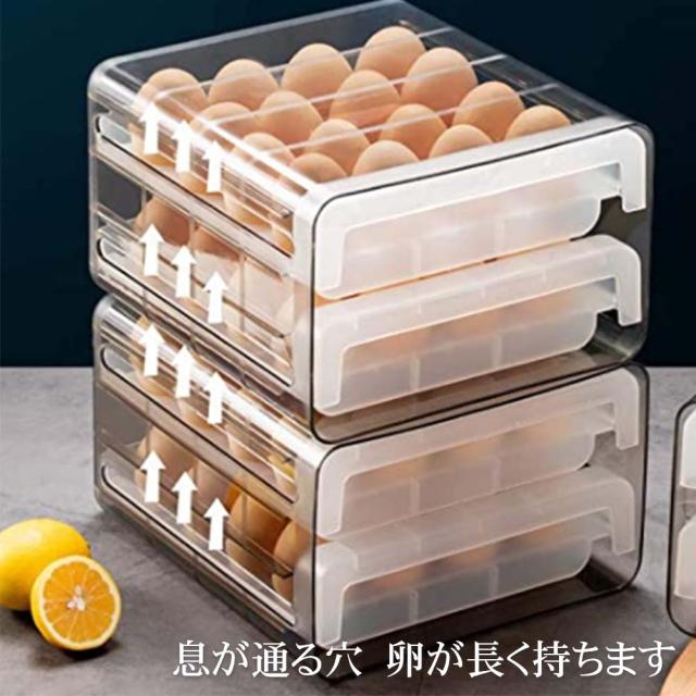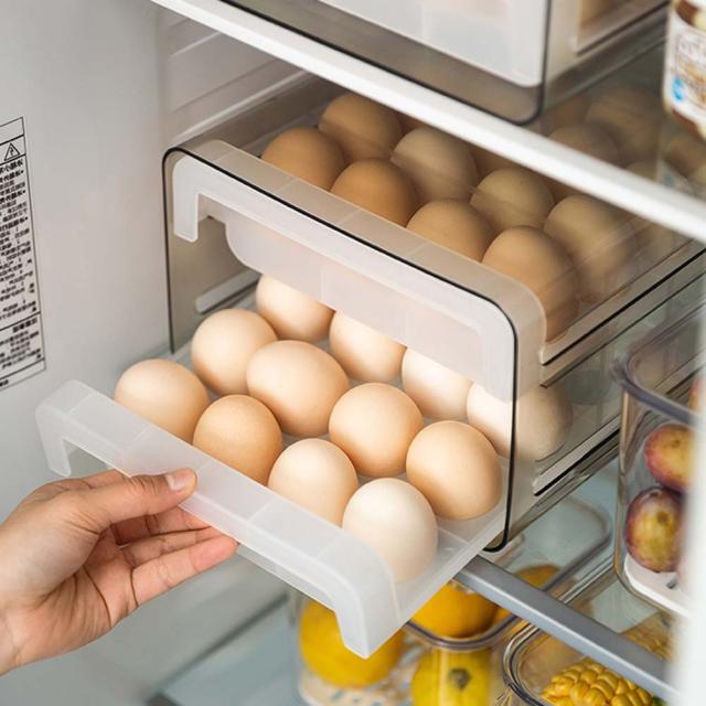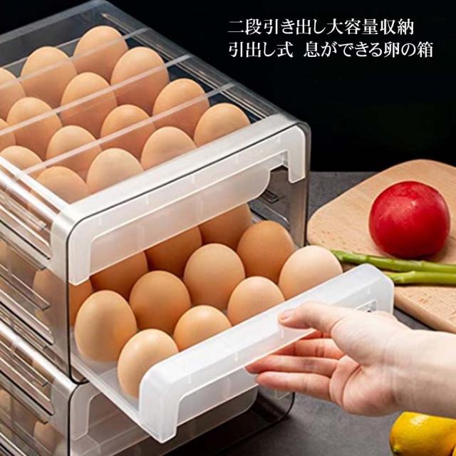 【簡単操作】冷蔵庫用 卵ボックス 取り出しやすい:ダブルドロワータイプで取り出しやすいです。引き出し式の卵収納ボックスは、冷蔵庫の占有スペースを減らすことができます。通常の卵ボックスはより強力です。卵を折ったり壊したりする心配はありません。