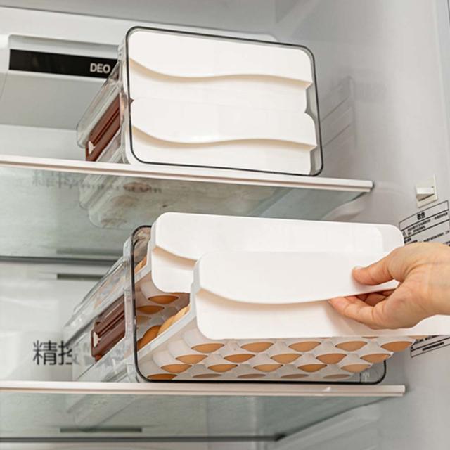 【容量】:32個の卵容器が2段階に分かれており、上下にそれぞれ16個の卵を収納できます。お手入れが簡単。全体的に掃除ができ、収納も快適です。透明なグリッドを引き抜くと、卵の数を確認したり、いつでも補充したりするのに便利です。