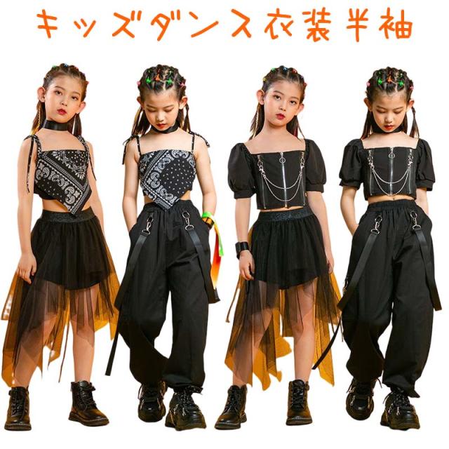 キッズダンス衣装 ヒップホップ 半袖 へそ出し ダンス衣装 セットアップ 上下 トップス パンツ スカート 子供 キッズ ダンス 衣装 かっこいい 子ども服 ジュニア チームお揃い 発表会 演出服 帽子付かない 団体衣装 HIPHOP セットアップ