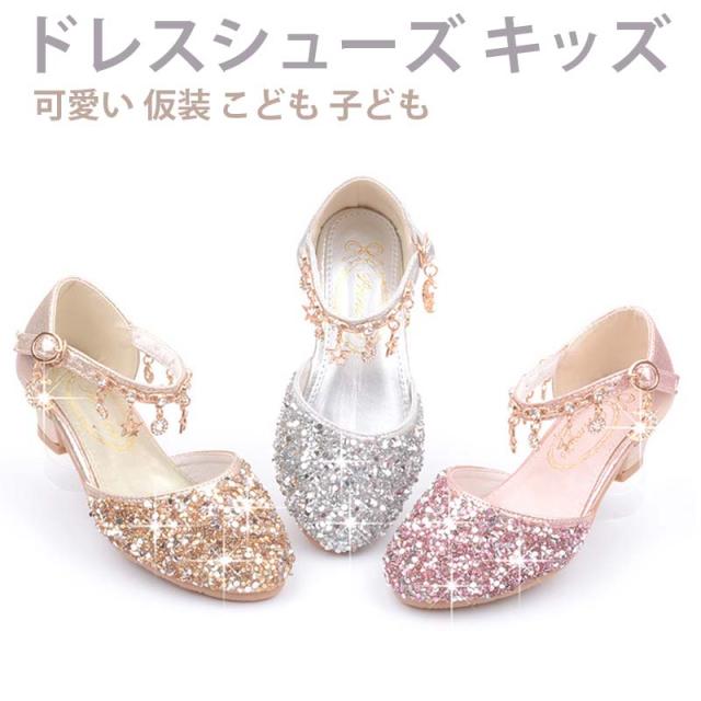 キラキラなガールズシューズ、足元から優雅な存在感を演出。ドレスや洋服を、更に引き立てます!子供ドレスはもちろんワンピース、フォーマルスーツなど子供服とも相性抜群です。