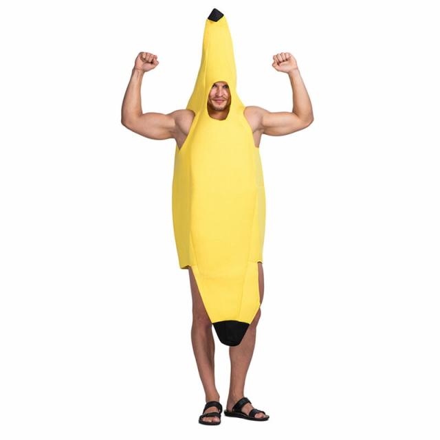 バナナ コスプレ 面白い ハロウィン バナナマン 全身バナナ 仮装 コスチューム 果物 食べ物 着ぐるみ 男女兼用 コスチューム 仮装 学園祭 全身 ハロウィン パーティー イペント 大人 面白い