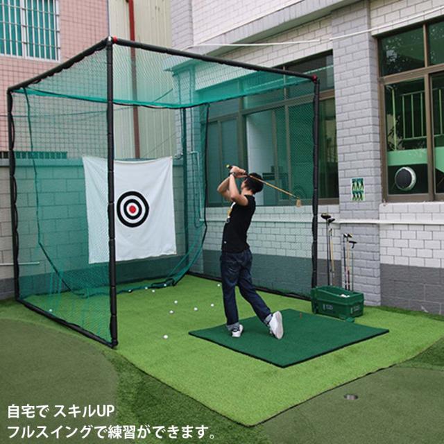 ゴルフネット ゴルフ練習ネット 長さ3m×幅3m×高さ3m ゴルフネット ゴルフマット 大型 自宅 室内 屋外 組み立て式 ゴルフスイング練習用ネット ゴルフ練習セット 初心者でも設置簡単 練習器具 初心者向き