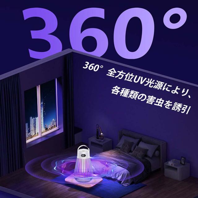 電撃殺虫器 電撃蚊取り器 強力捕虫器 蚊よけ 殺虫灯 コバエ取り LED誘虫灯 UV光源吸引式 蛾 蚊 駆除 電撃 360°強力蚊除け 殺虫ライト 静音設計 薬剤不用 無害 USBタイプ 大容量LEDランプ照明 屋外/屋内/居間/オフィス/飲食店/キャンプ/夜釣り アウトドア 簡単設置 携帯便利