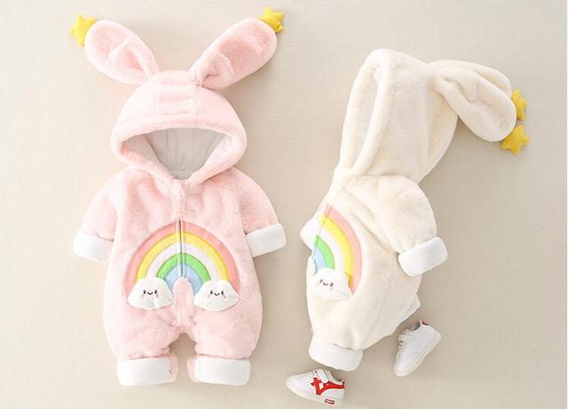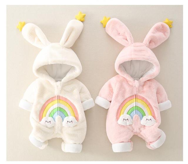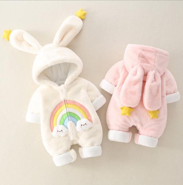 ベビー服 新生児 オールインワン・サロペット ロンパース 防寒着 つなぎ 秋冬 幼児 ウサギ 耳付き かわいい カバーオール 女の子 男の子 ジャンプスーツ ベビー服 赤ちゃん 百日祝い 出産祝い