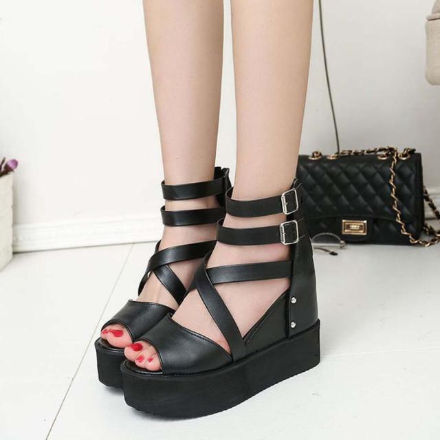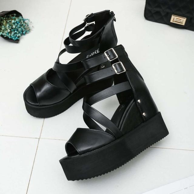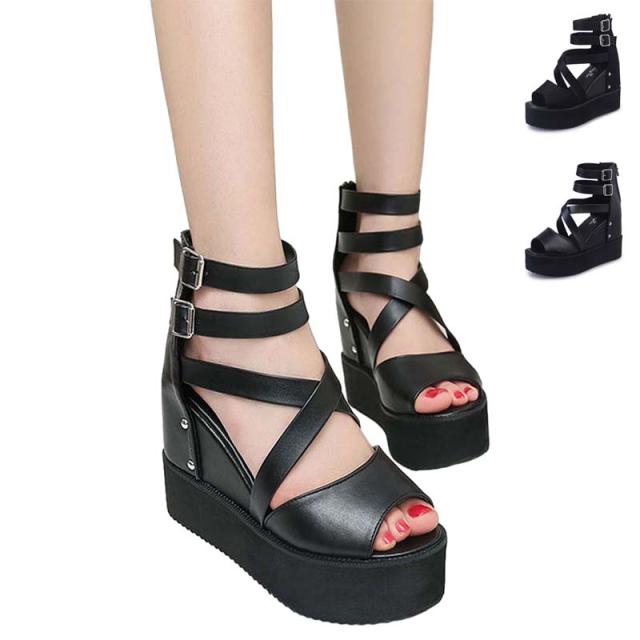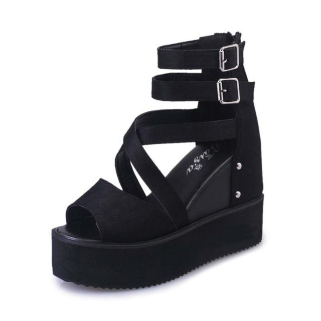 厚底サンダル レディース オープントゥ バッグジッパー ウェッジ