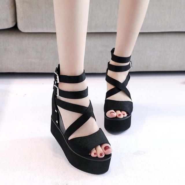 超ハイヒールで足をきれいに見せてくれる脚長スタイルの完成厚底サンダル