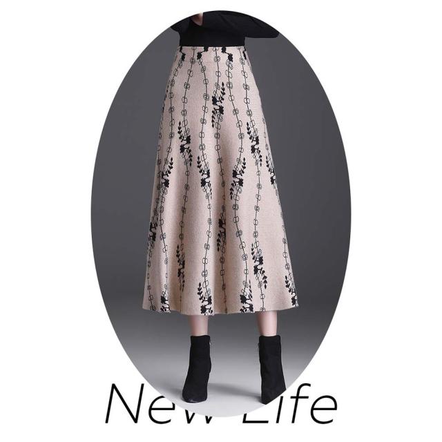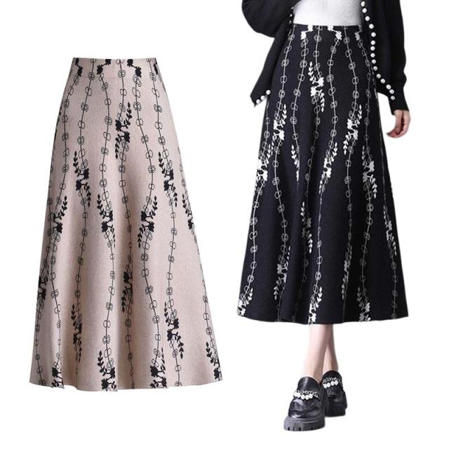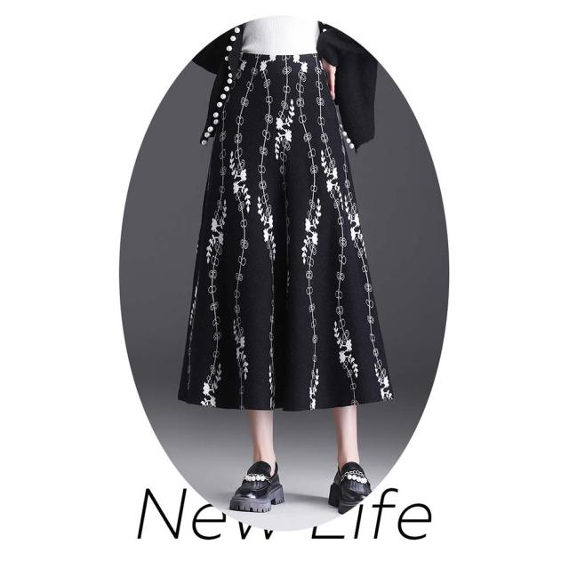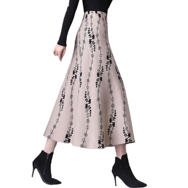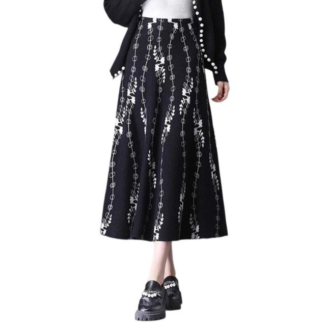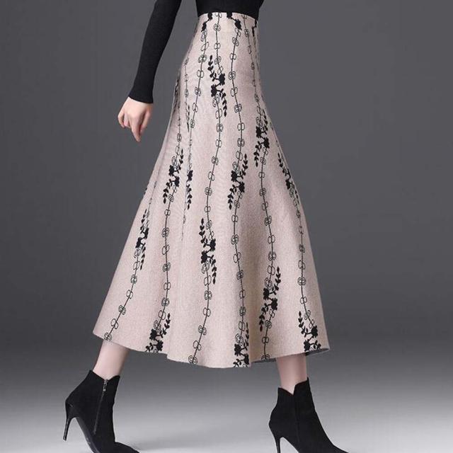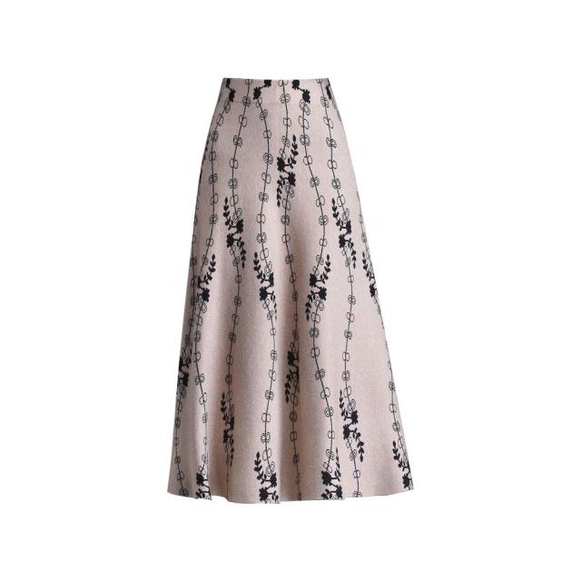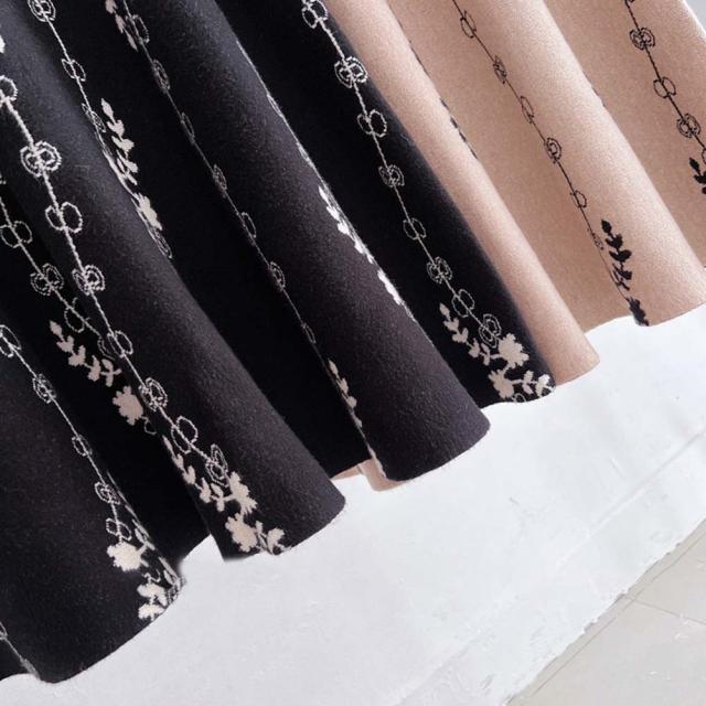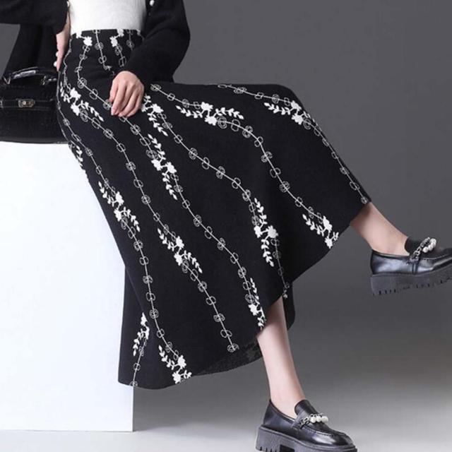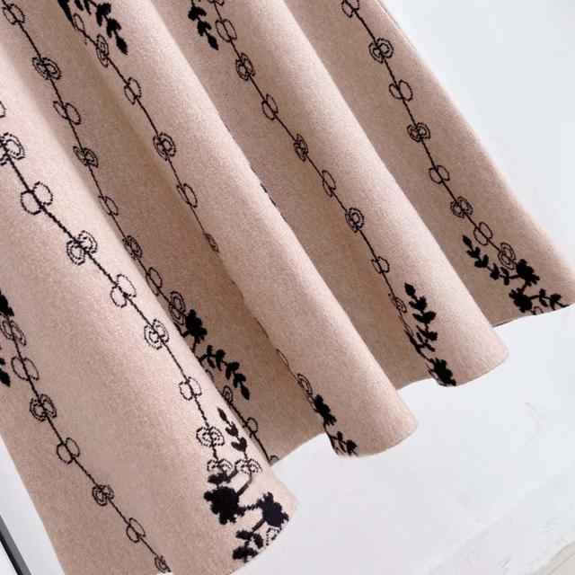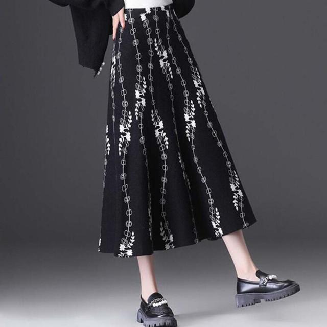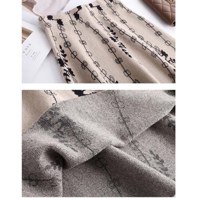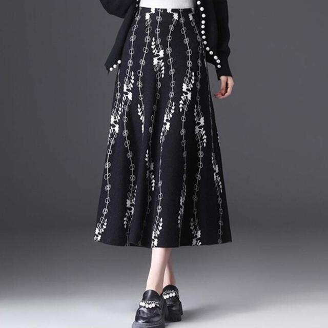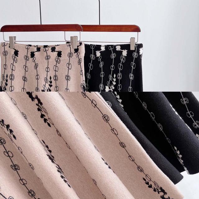 ニットスカート スカート ボトムス レディース 春 秋 冬 柄 ロング ミモレ丈 ニット フレアー ウエストゴム 秋冬 揺れ感 落ち感 細見せ効果 おしゃれ きれいめ カジュアル フェミニン 可愛い 着回し