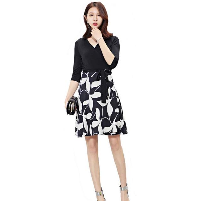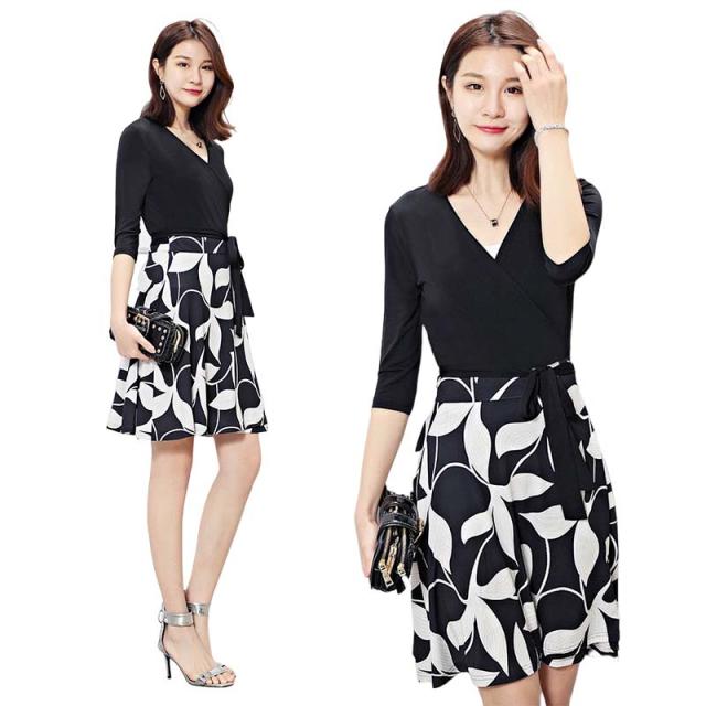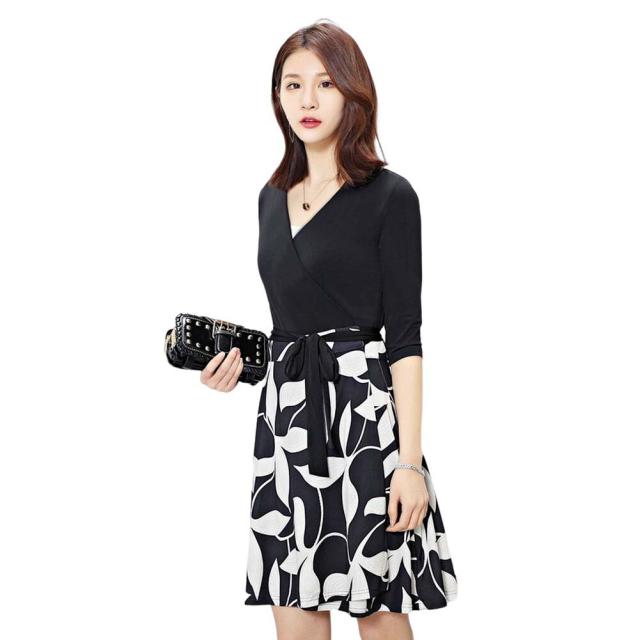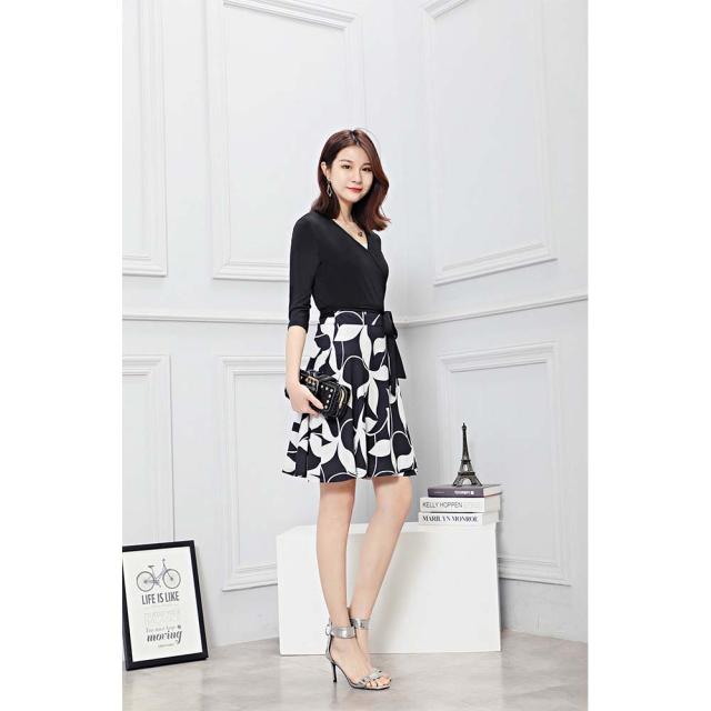 ワンピース 大人 上品 レディース 長袖 七分袖 カシュクール ラップワンピース Vネック 膝丈 春 夏 秋 aライン 結婚式 オフィス エレガント お呼ばれ お嬢様 袖あり 発表会 清楚 膝丈 ママ ミセス