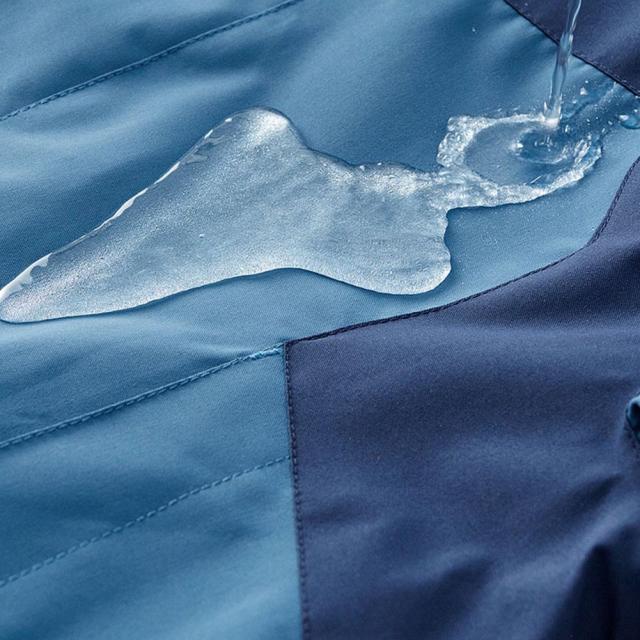 撥水性を持っているアウターの表面生地、雨や水等を弾き、急な悪天候もスマートに対応できます。首元までのジッパー、首元と裾に幅が調節できるドローコードが付いていて、冷気の侵入を防ぎ、保温できる。