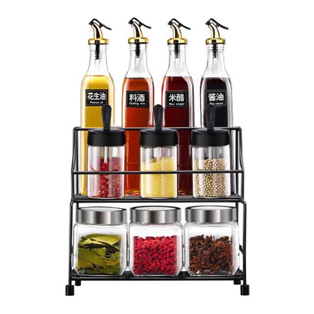 オイルボトル 調味料入れ 11点セット 調味料ボトル オイルポット お店 家庭 キッチン用 ラック付き おしゃれ スパイス ガラス塩 砂糖入れ 調味料容器 調味料ボトル 調味料ケース 瓶 トレー