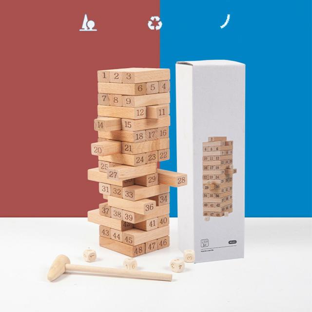 ブロックタワーゲーム 48ピース 木製おもちゃ タワー積み上げゲーム バランスタワーゲーム 木のおもちゃ バランス テーブルゲーム パーティーゲーム 木製ブロック 建物 転倒 タンブリングゲーム デラックススタッキングゲーム