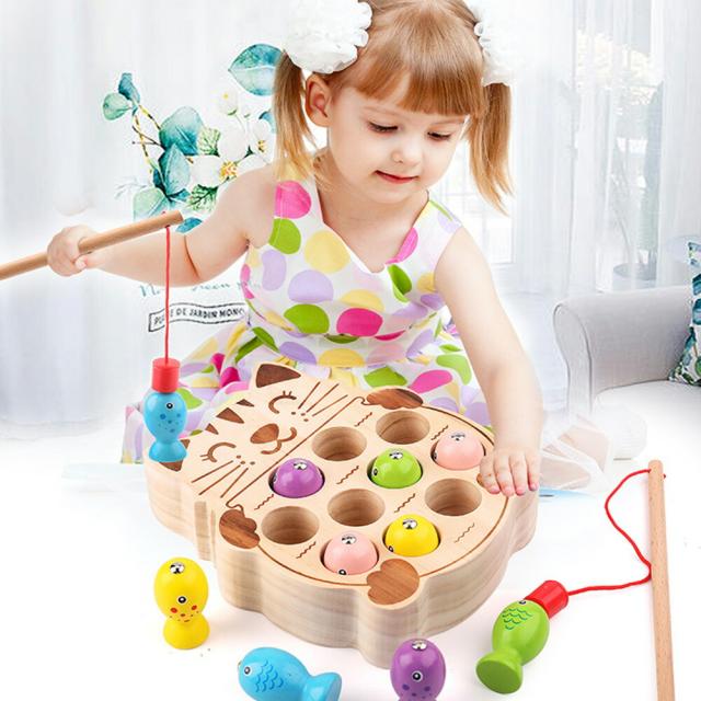 穴の中にはカラフルな魚があり、マグネットを付属する道具を穴に近づけると、簡単に吊り上げることができます!
