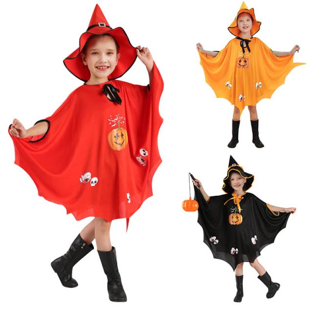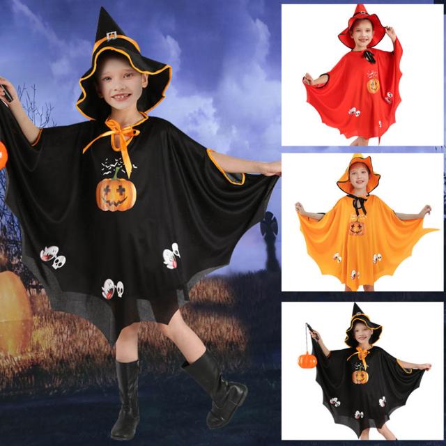ハロウィン 仮装 子供 マント かぼちゃ 仮装 衣装 カボチャ 魔女 可愛い 人気 コスプレ キッズ 男の子 女の子 半袖 コスチューム パーティー イベント 宴会 変装グッズ 文化祭 学園祭 舞台 ステージ服装 演出服 帽子付き 3色展開
