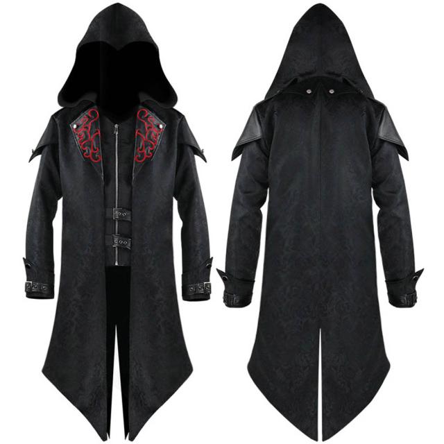 デビルファッション メンズゴシックフード付きジャケット フィットジャケット ユニセックストレンチコート スチームパンク トレンチコート メンズジャケット 中世のハロウィーンレトロコスチューム オーバーコート 大人 衣装 ゴシック 舞台 コスプレ衣装