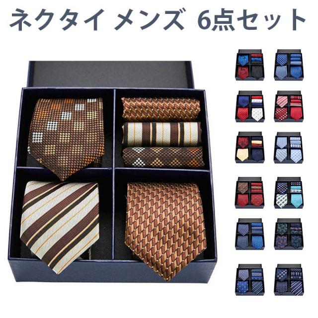 ネクタイ メンズ 6点セット ストライプ ポケットチーフ ネクタイセット 毎日 ビジネス メンズ 職場 普段使い フォーマル 仕事用 卒業式 営業職 結婚式 父の日 プレゼント 二次会 パーティー ギフトボックス付き