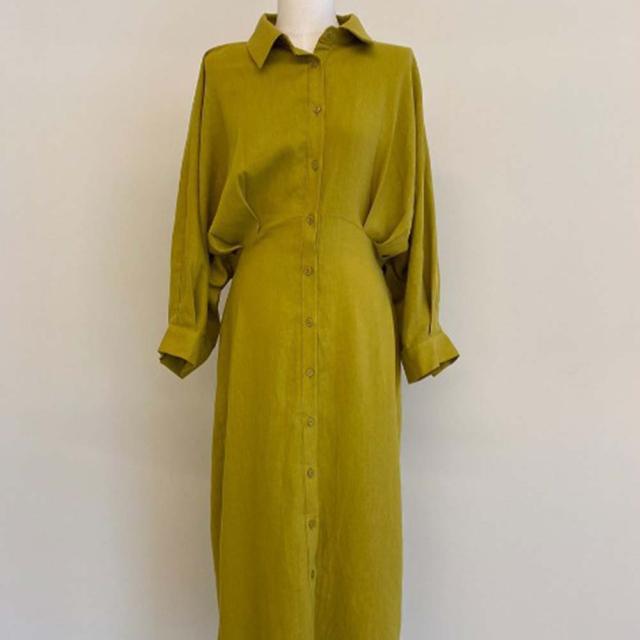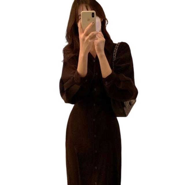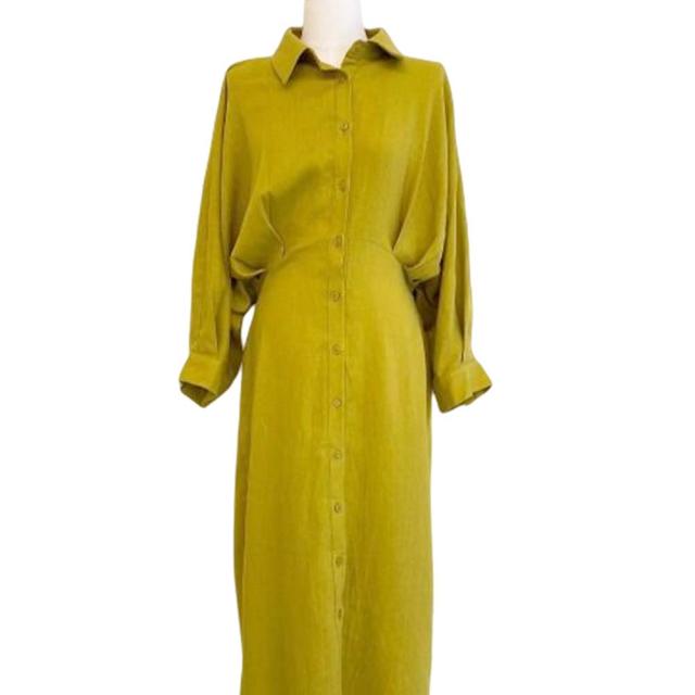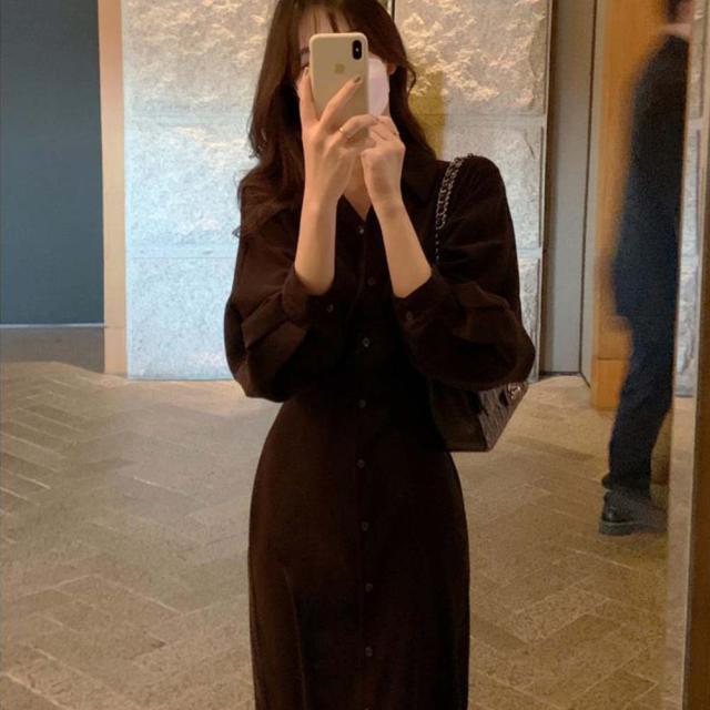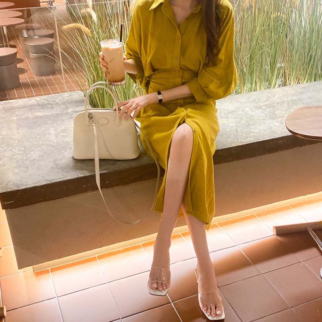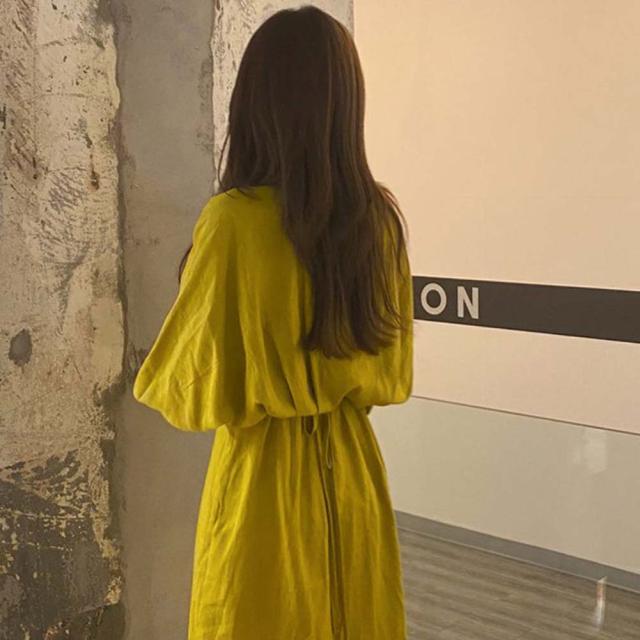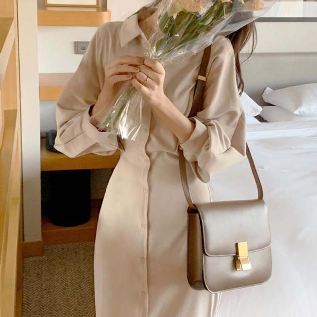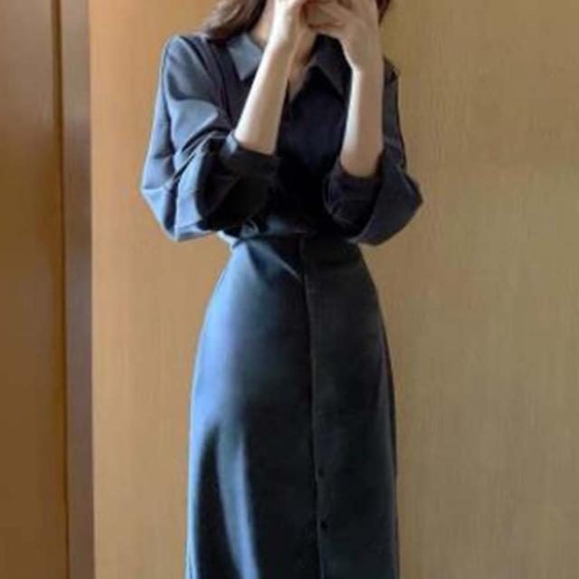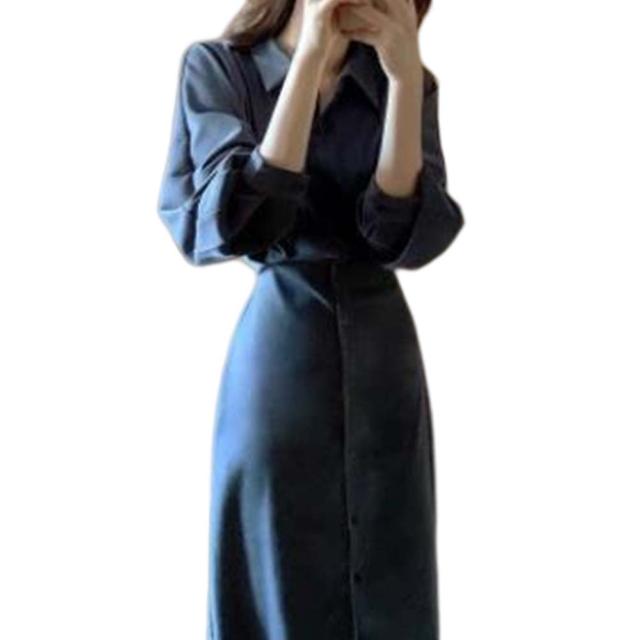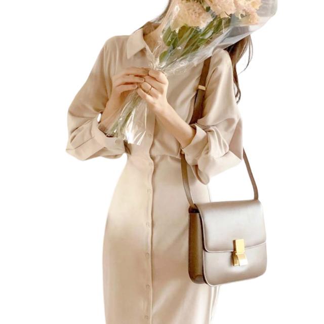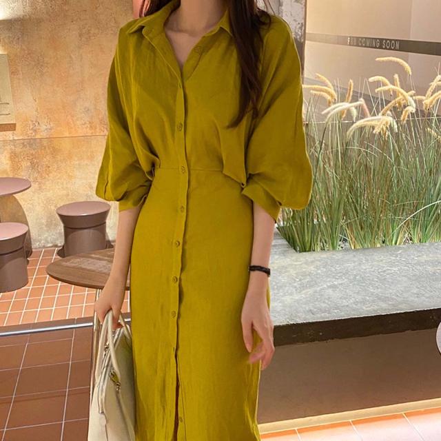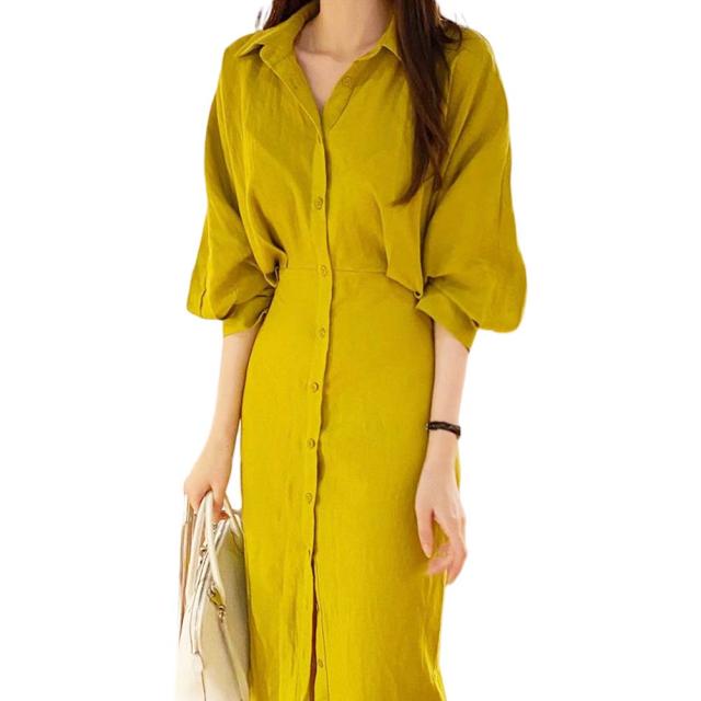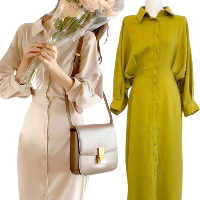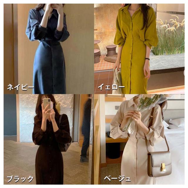 エレガント 韓国 春 秋 ワンピース レディース ランタンスリーブ シャツワンピース レトロ きれいめ ウエストマーク