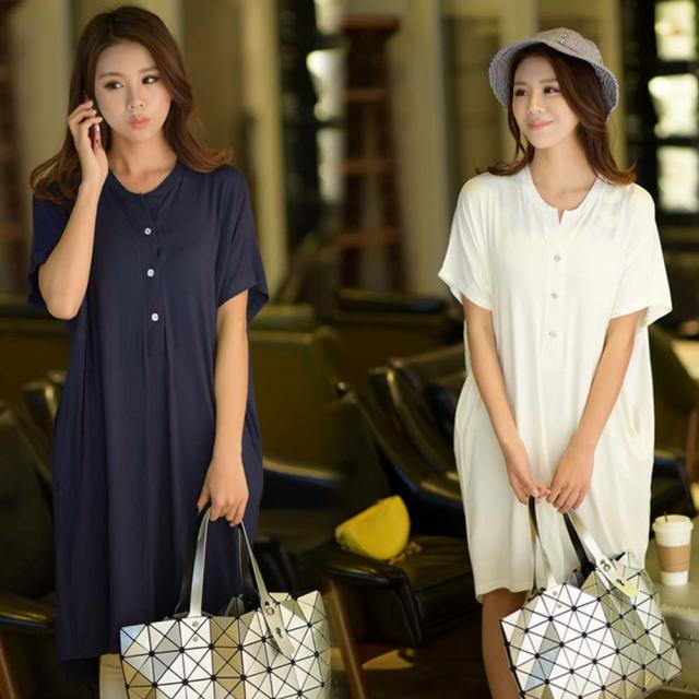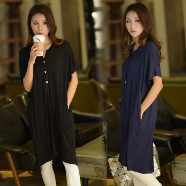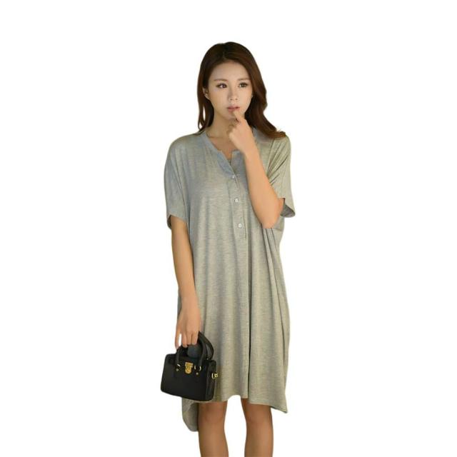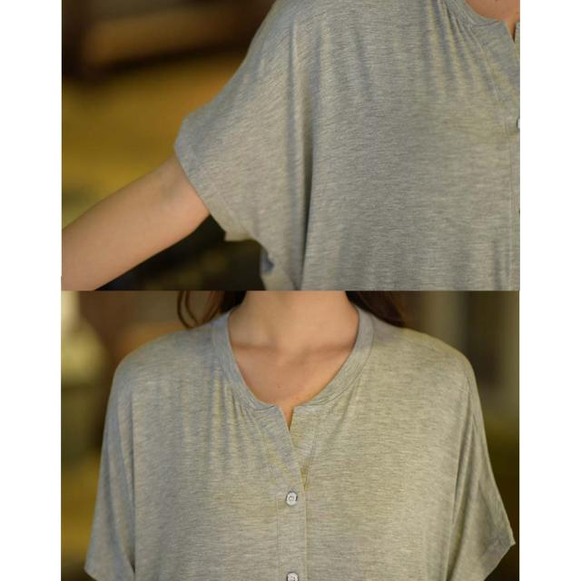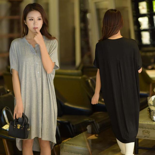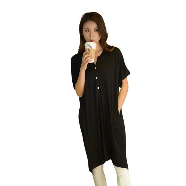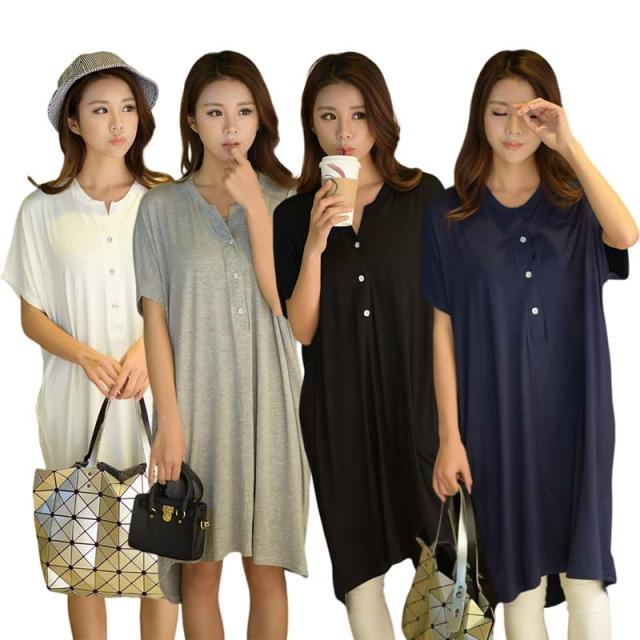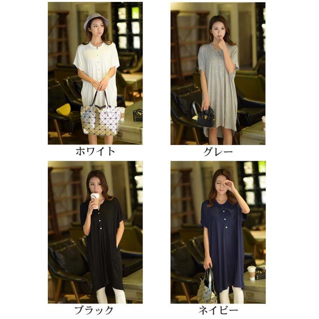 薄手の柔らかストレッチ素材 ゆったりドルマンデザイン 無地半袖 ロング丈Tシャツワンピース ロングTシャツ 大きいサイズ ロンT チュニッ マタニティ 授乳服 パジャマ トップス 前開き 夏 レディース