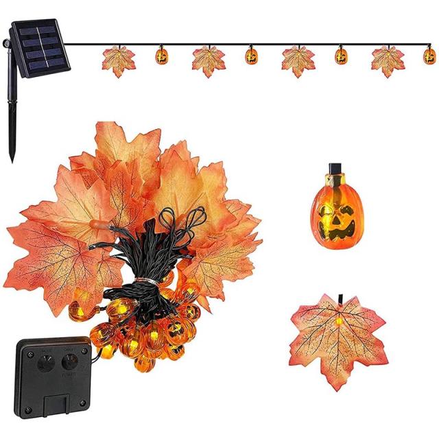 ソーラー イルミネーションライト led 楓の葉 ストリングライト 飾り 装飾 ライト ガーデンライト カエデの葉 かぼちゃ ライト 5M 20LED 飾りライト 8パターン点灯モード 家庭用インドア装飾 感謝祭 照明飾り おしゃれ 室内 屋外 庭 ハロウィン 新年 パーティ イベント